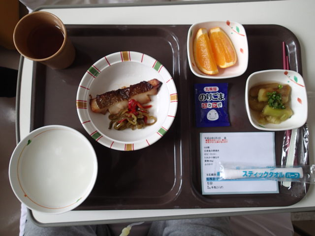 食事再開の最初が昼だったので、お昼ご飯からが3食後の切り替えですが、やっと固いご飯に戻りました
