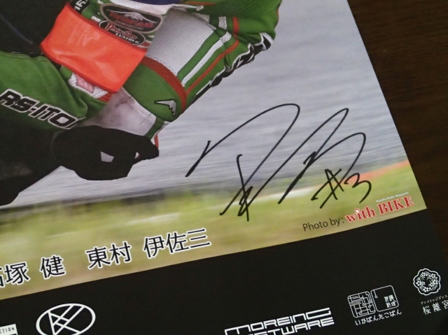 長方形な箱の中身は、全日本ロードレースST600クラスに参戦中の「岡村光矩選手」のポスターです