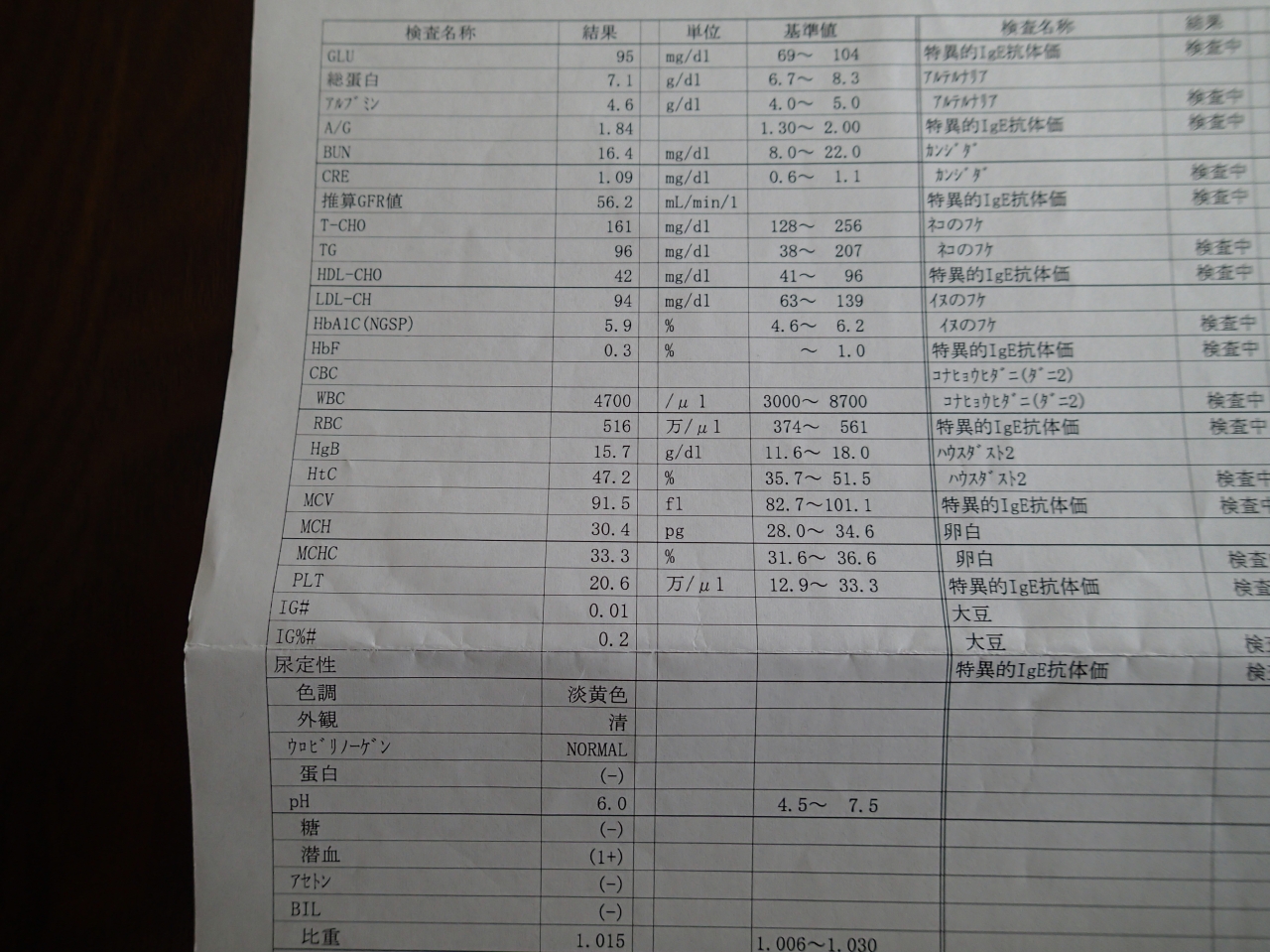 が・・・花粉症、正確にはアレルギーの検査結果はすべて「検査中」