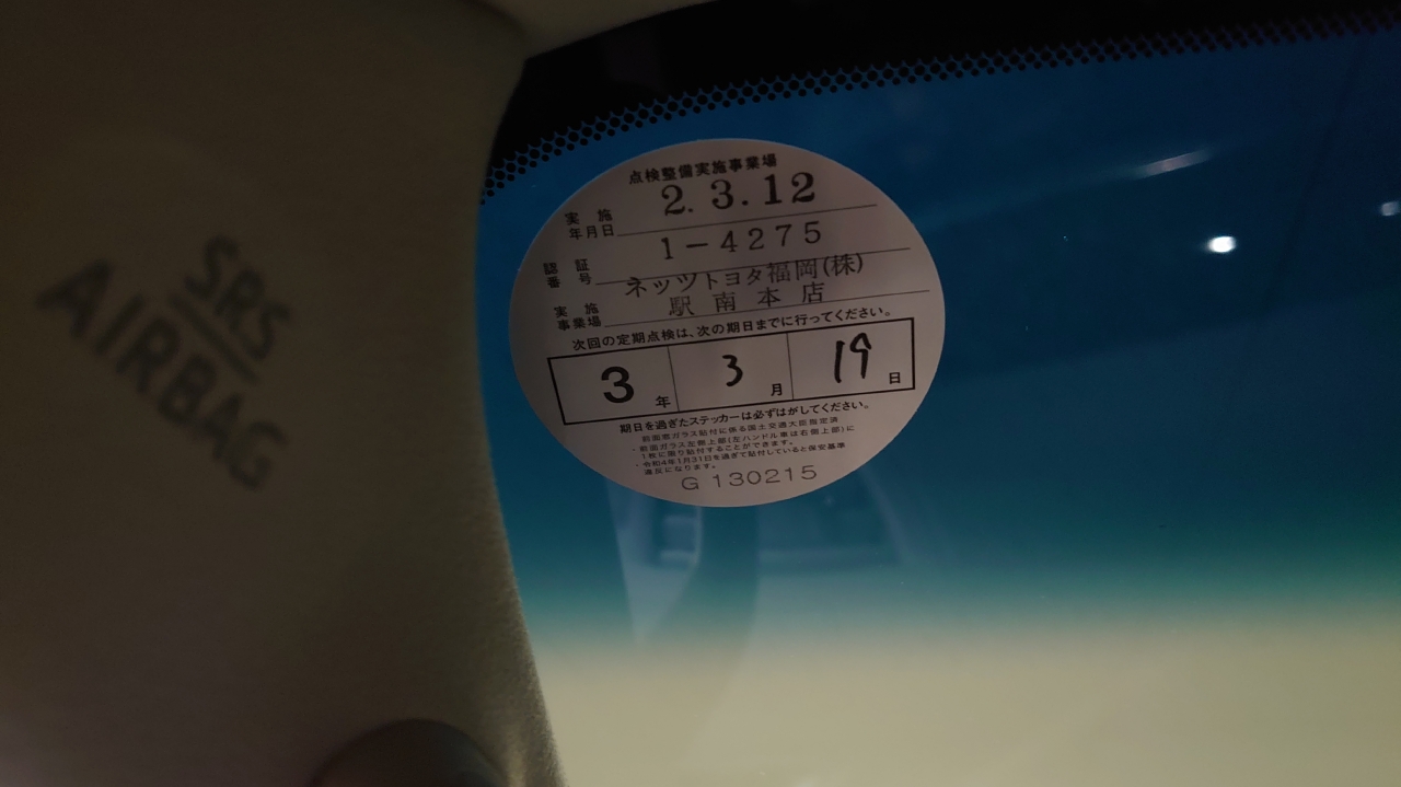車検標章が新しくなって帰ってきました・・・暗がりのスマホ撮影なので写りが悪くてスミマセン