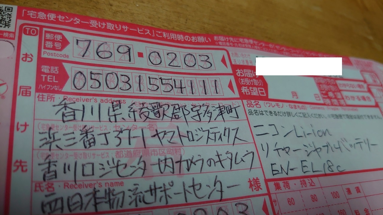 D6の付属品である「EN-EL18c」の充電は完了したため、チャージャーの故障では無いと考え、購入先へホームページのフォームから連絡し、現物を送付することとなりました