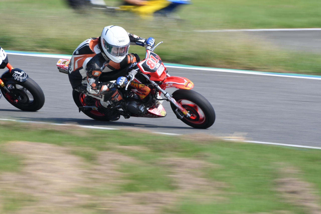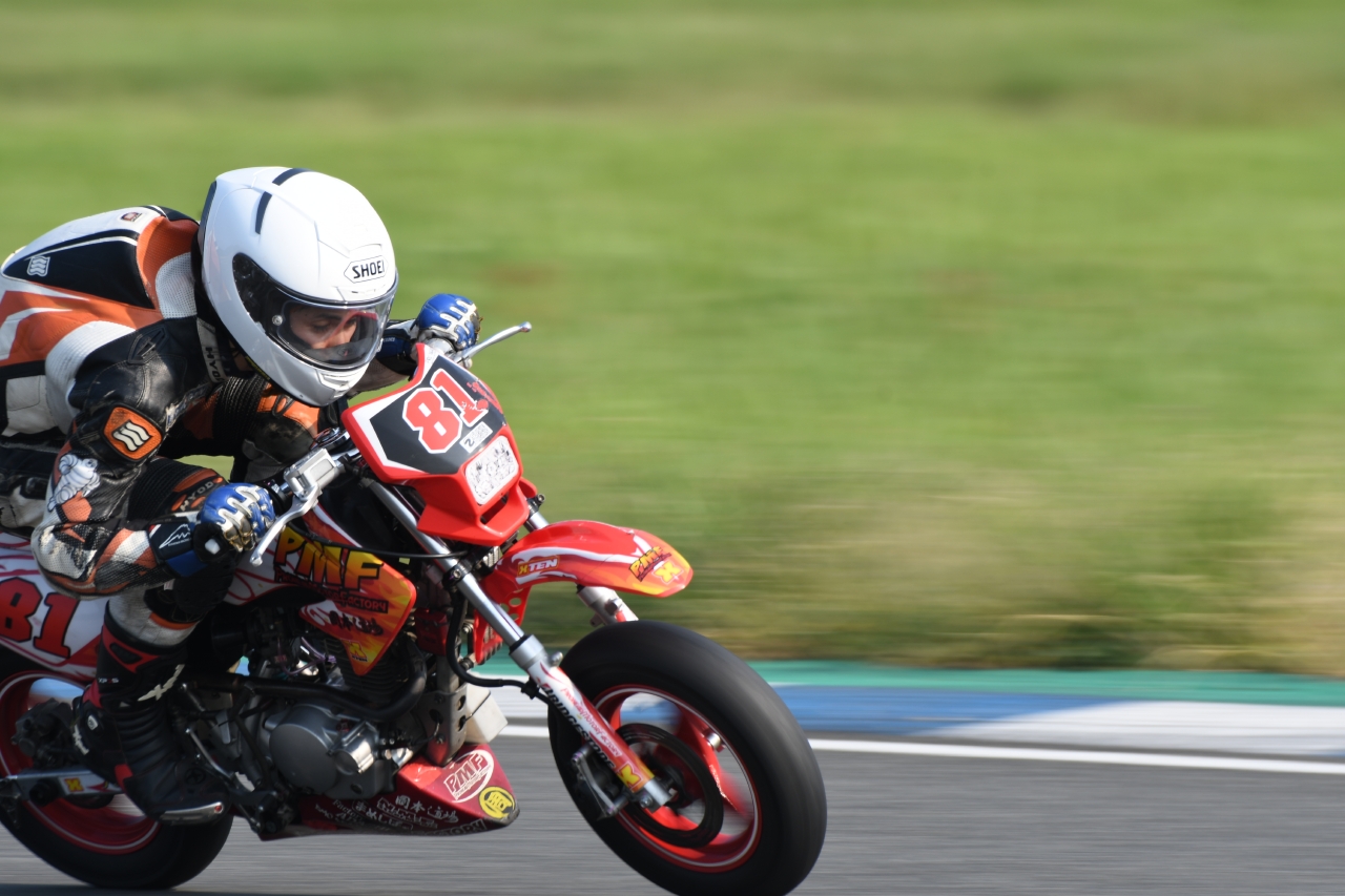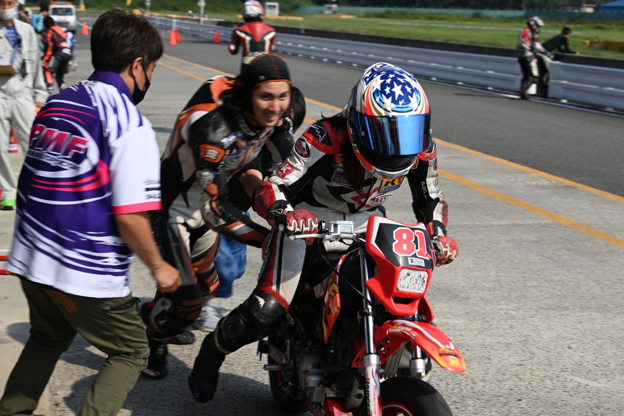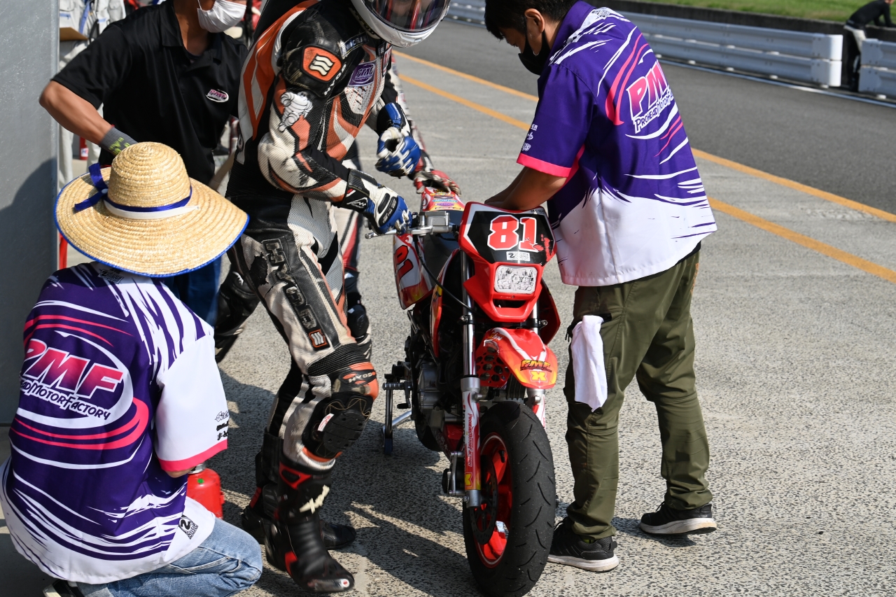 「9番グリッドは、「ゼッケンナンバー81PMFミニバイク部&岡本道場」チーム