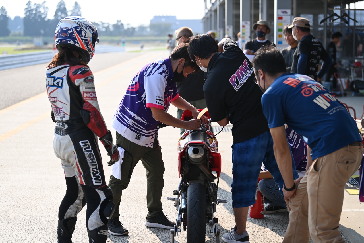 我が「PMFミニバイク部&岡本道場」チームは9番グリッドから耐久レースに挑みます