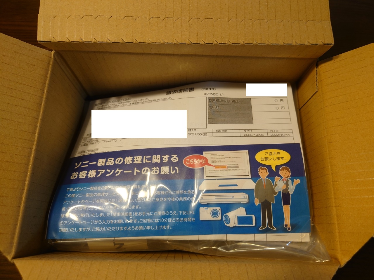 5年ワイド保証に入っているので、修理代金は「0円」です