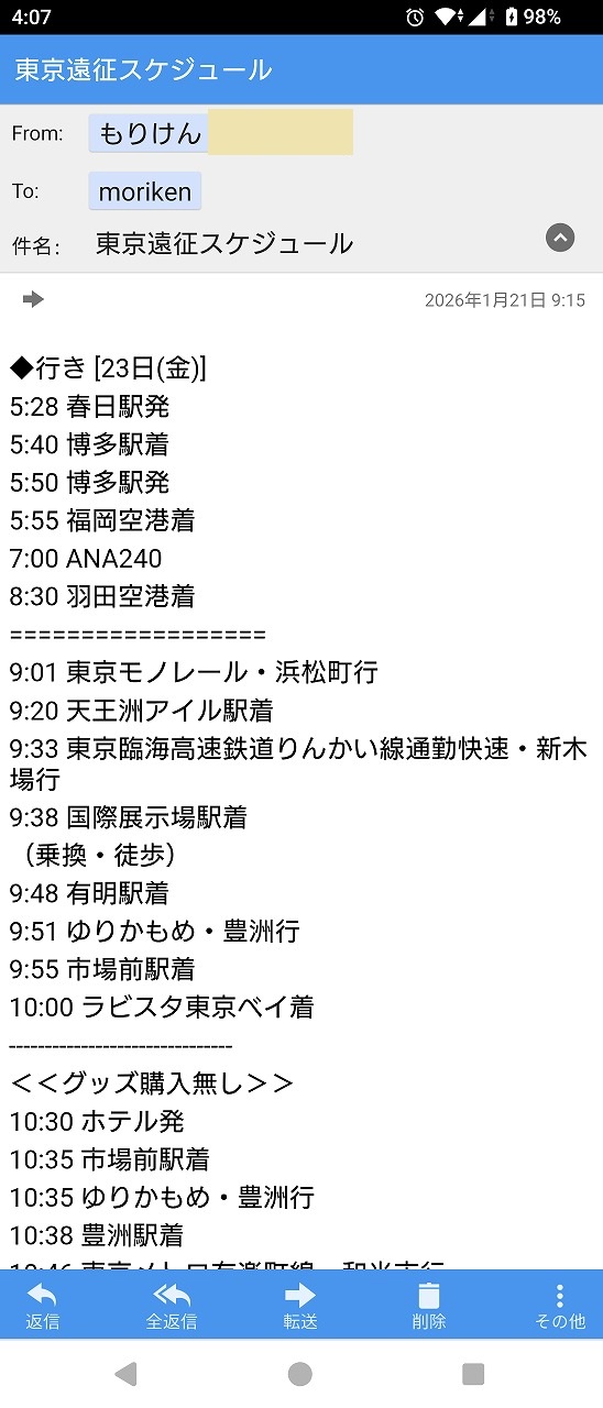 8:53 モノレール、いや今どきは東京パノラマラインに乗って?、いやケンティに会える時間が近づき嬉しそうな嫁w