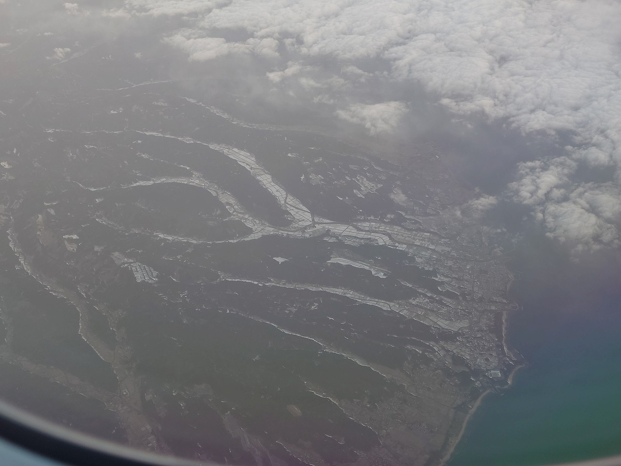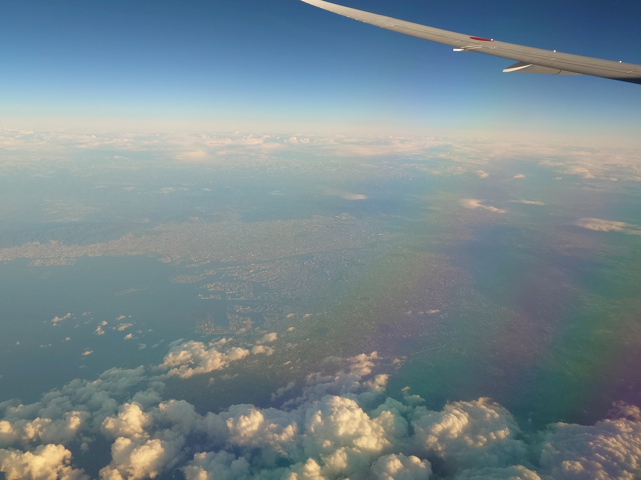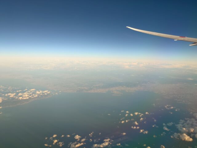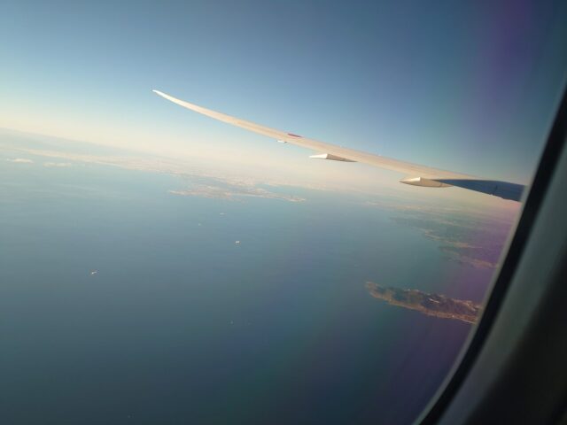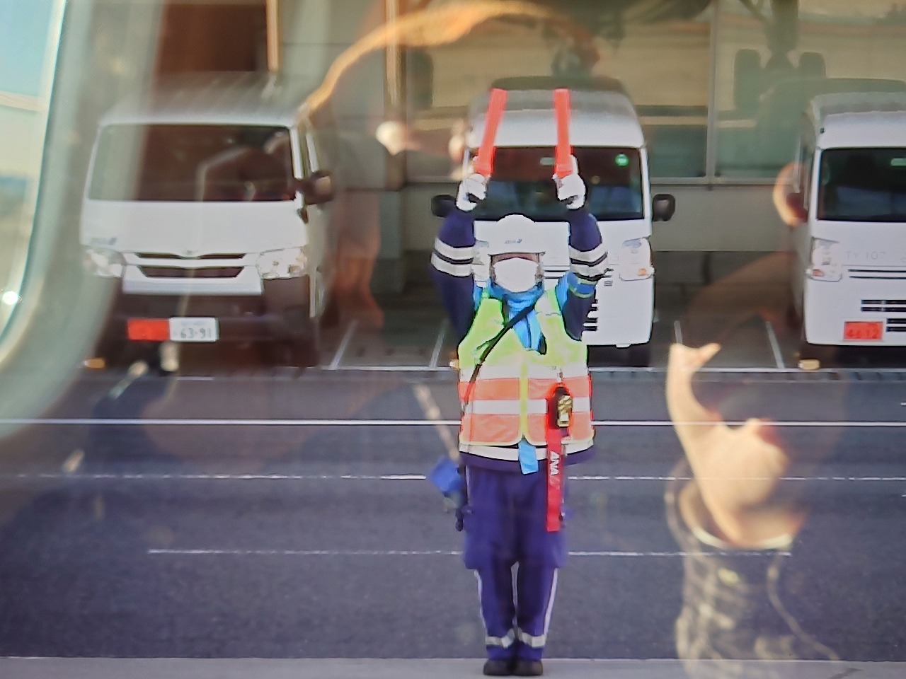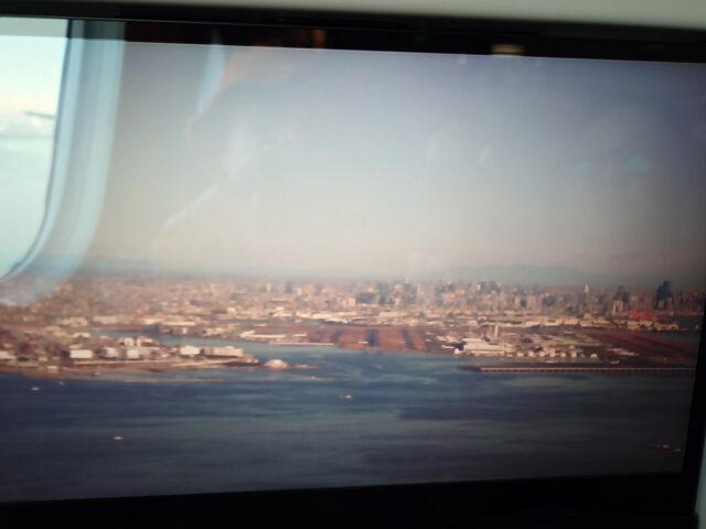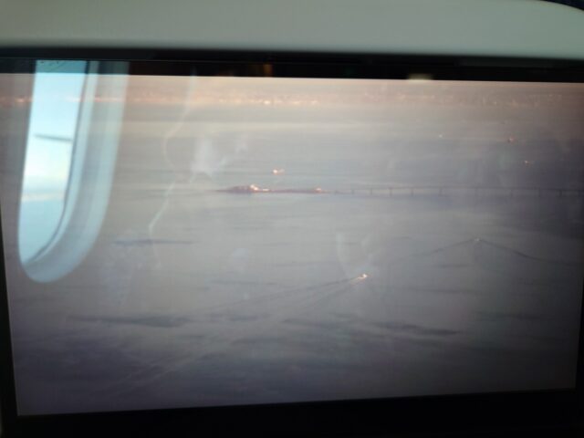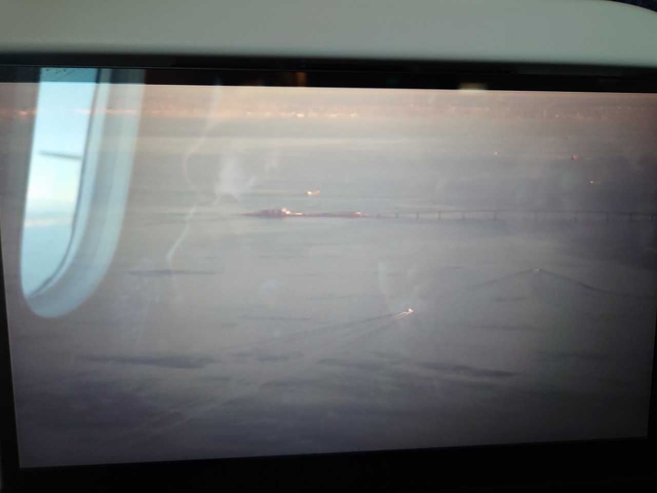 8:19 前方カメラにアクアラインな海ほたる、間もなく着陸ですね