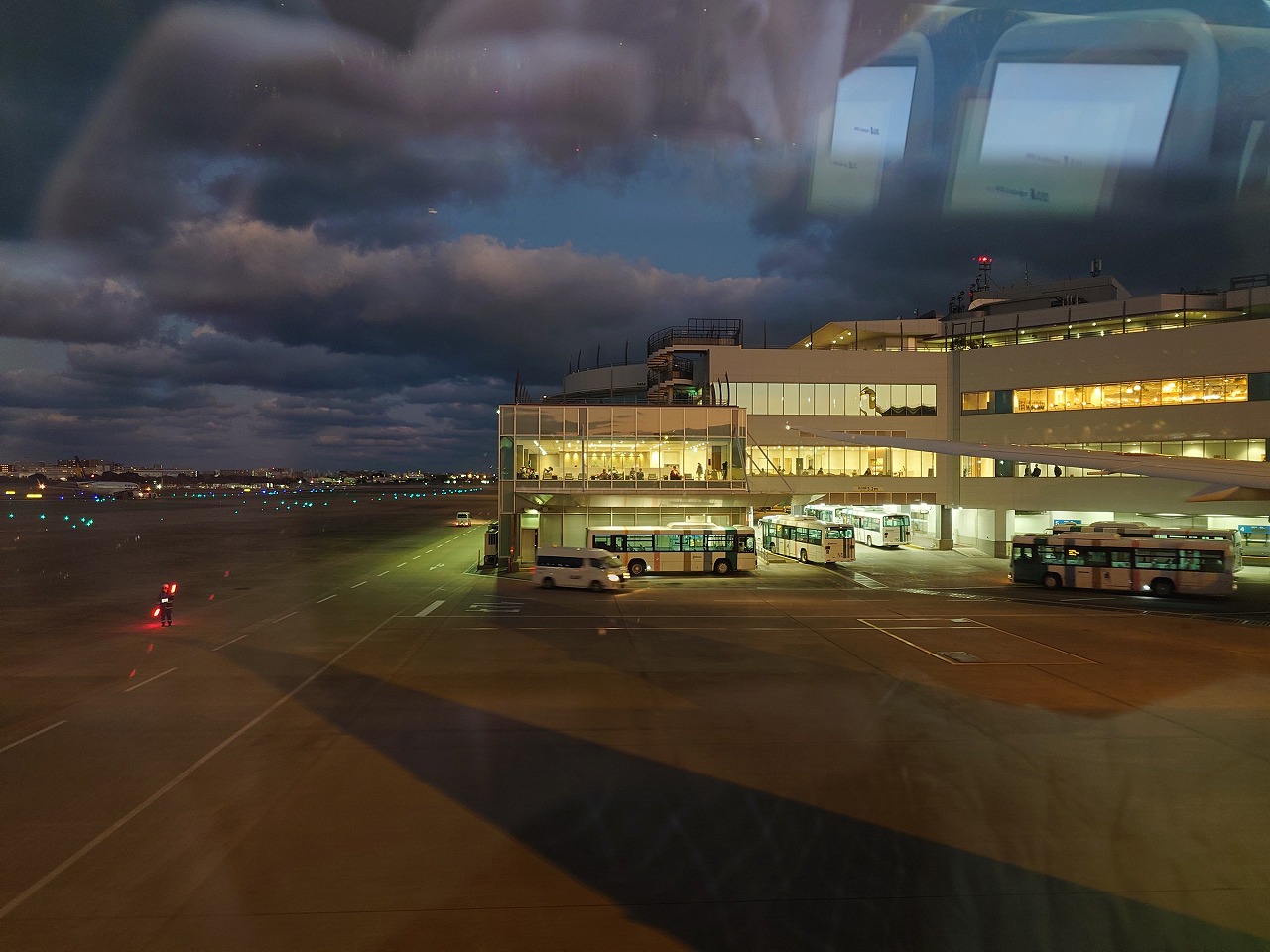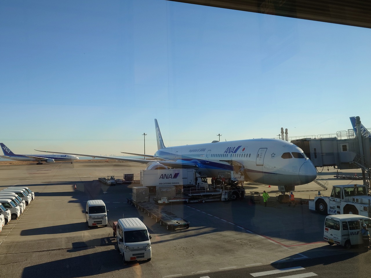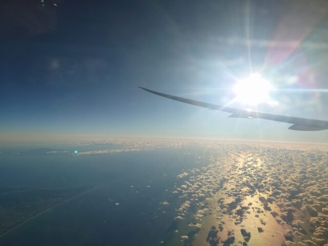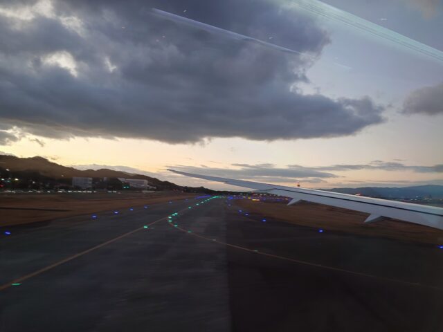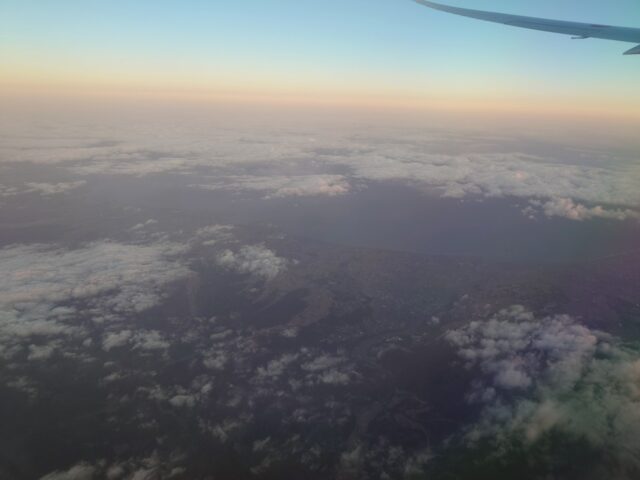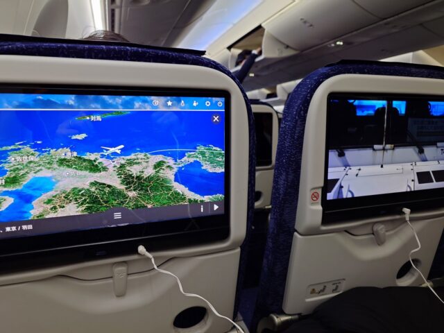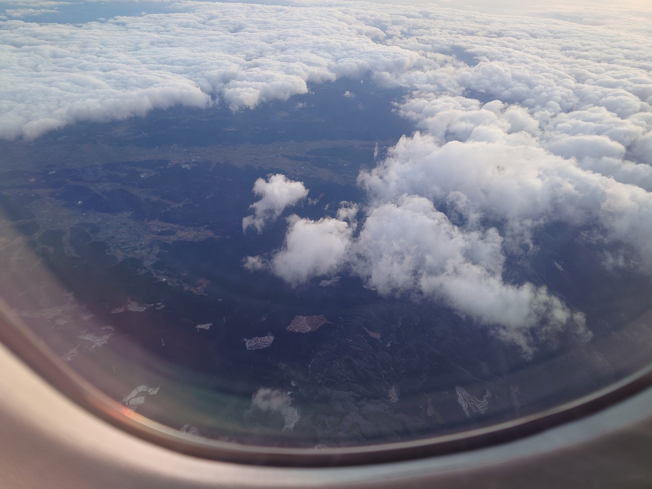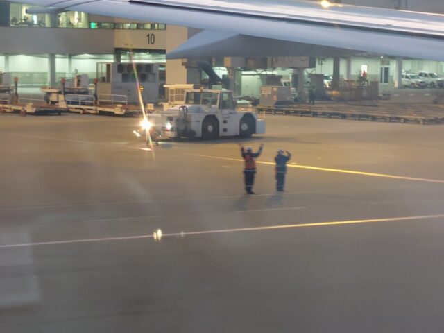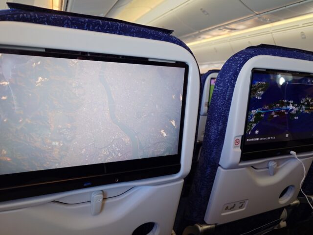 8:19 前方カメラにアクアラインな海ほたる、間もなく着陸ですね