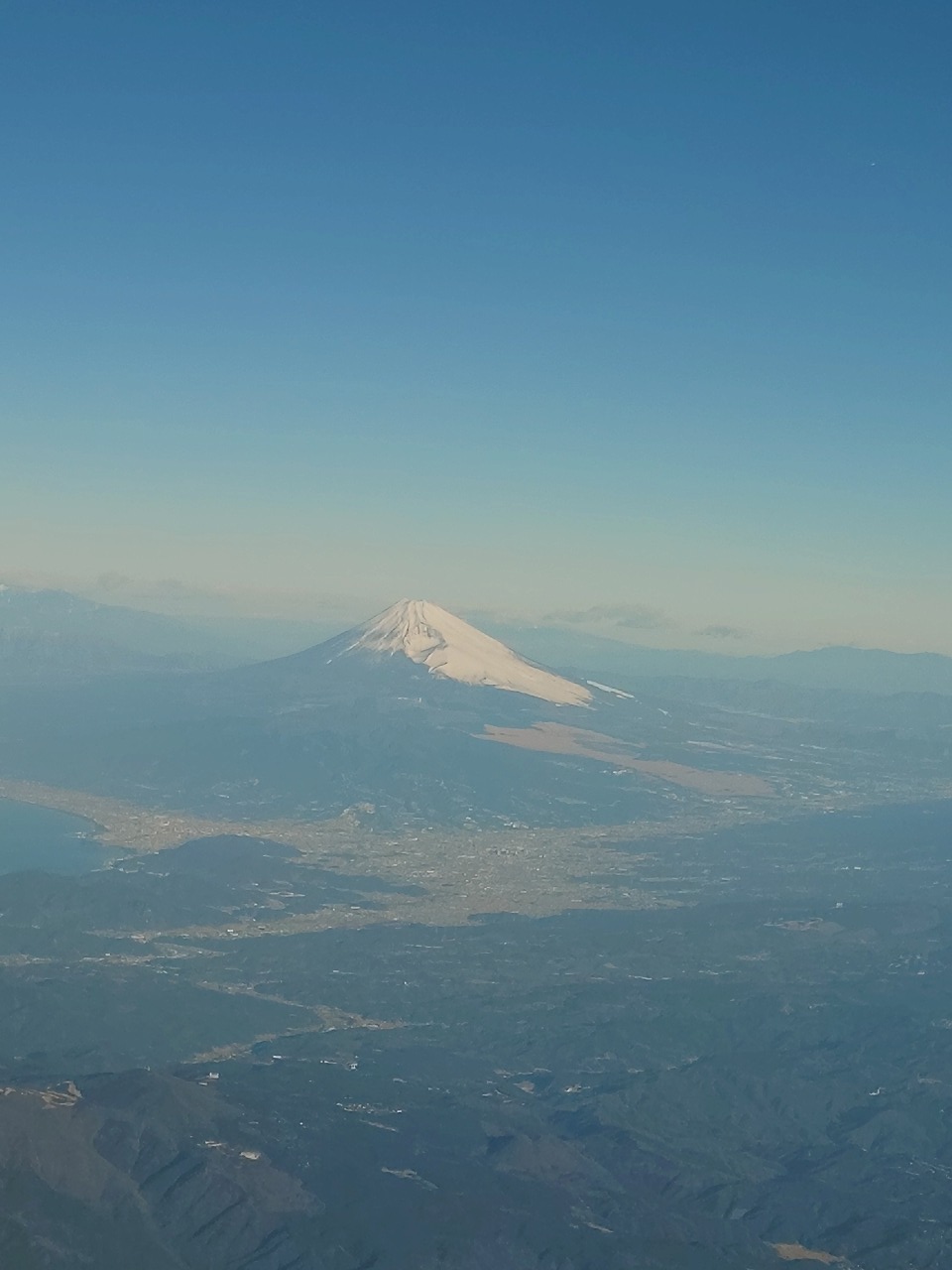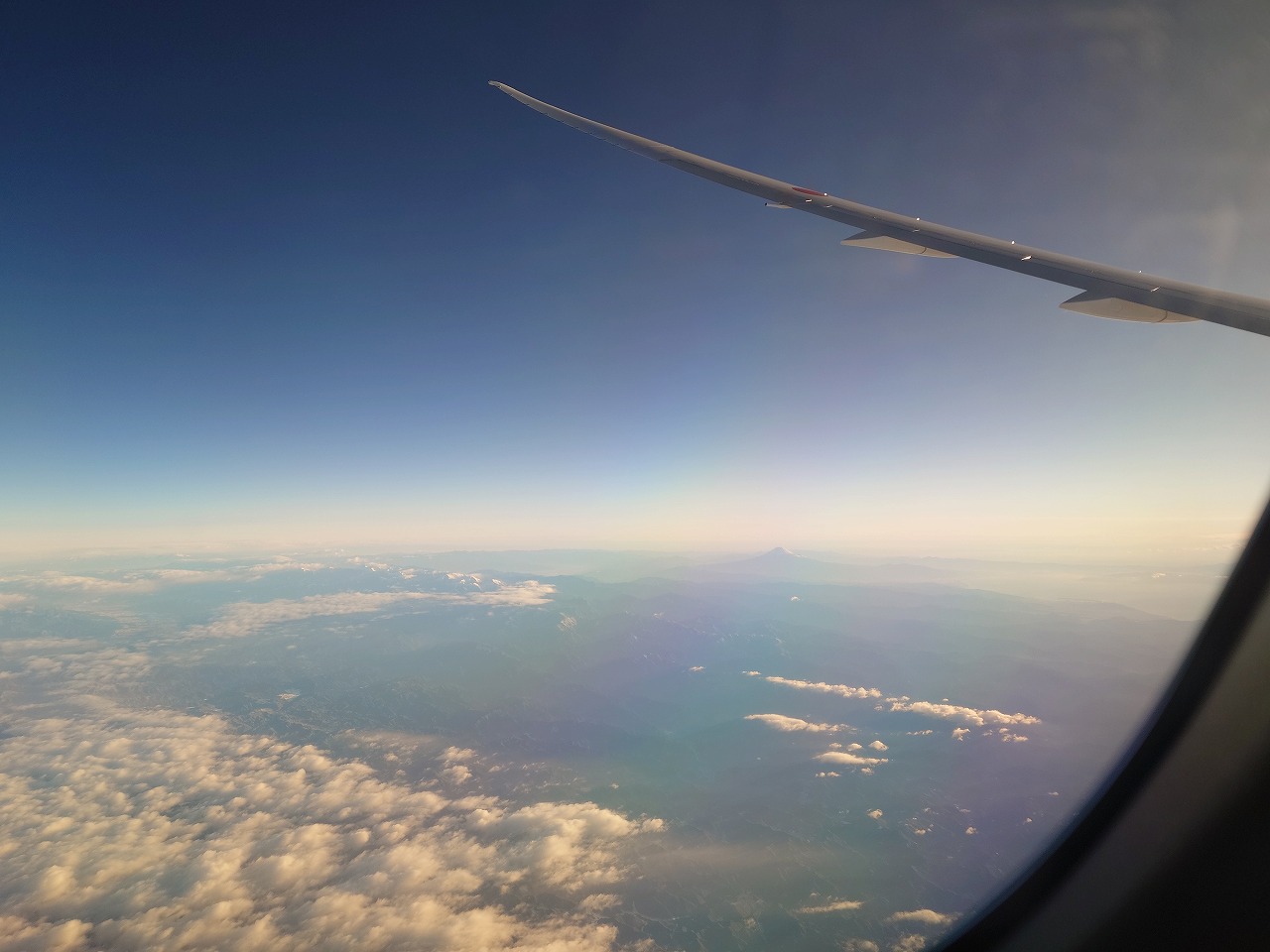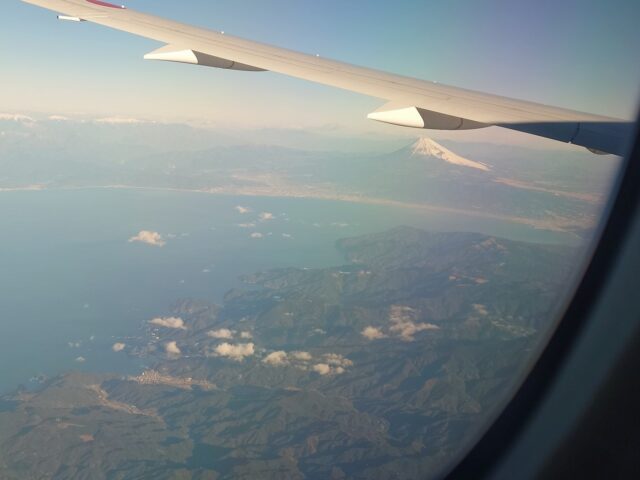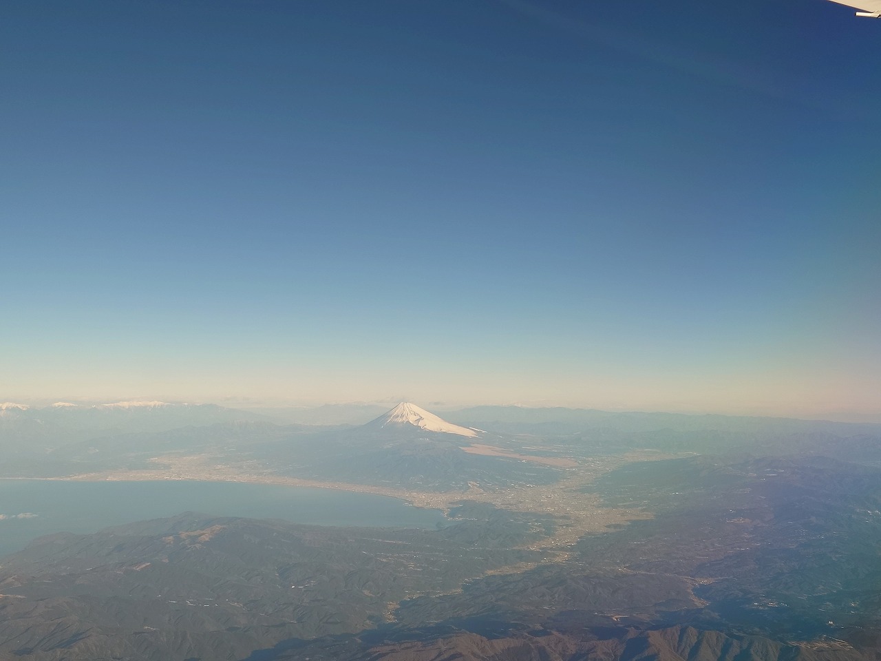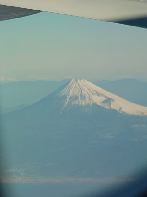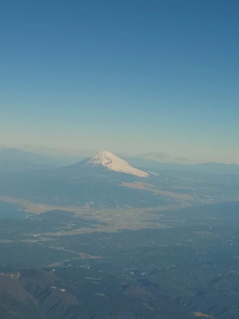 左旋回して東へ向かうと、もやってるけど裾野からの富士山