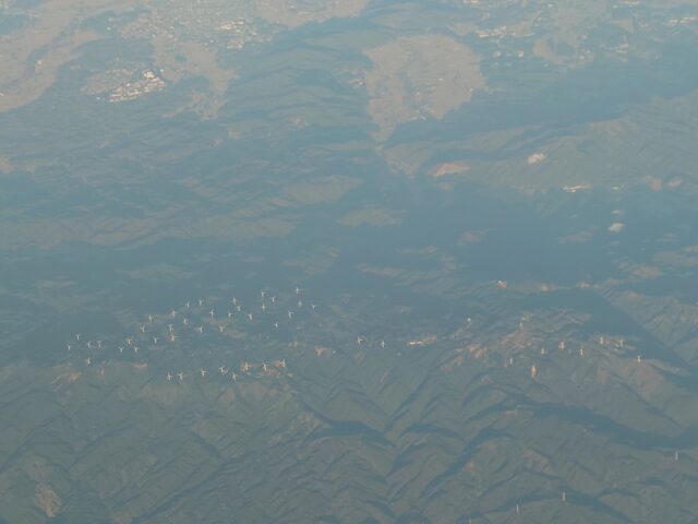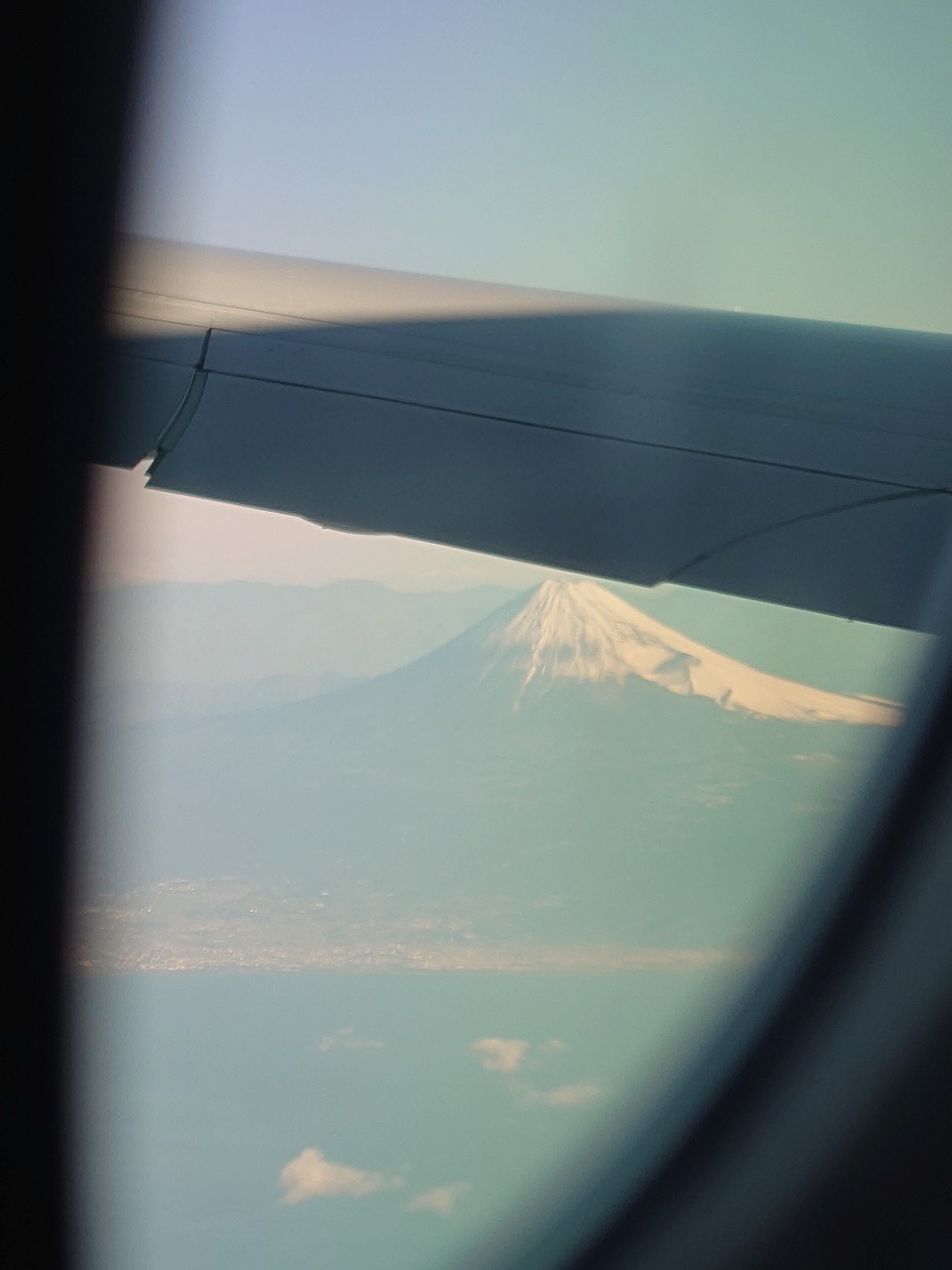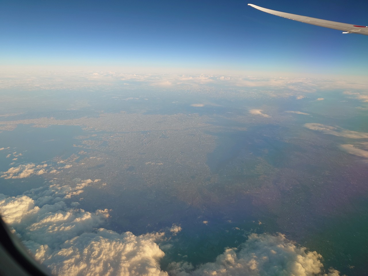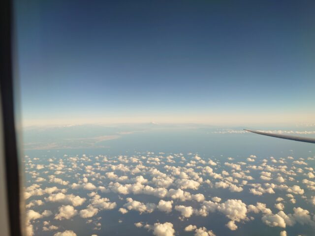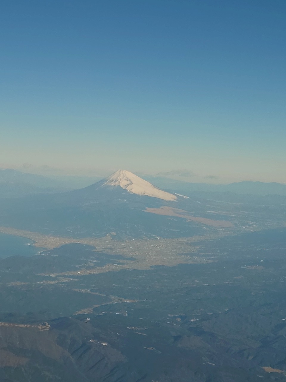 左旋回して東へ向かうと、もやってるけど裾野からの富士山