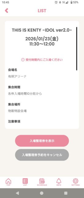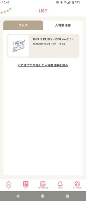 10:45 物販アプリを見ていたら、次の時間の空きが出て自分用に確保