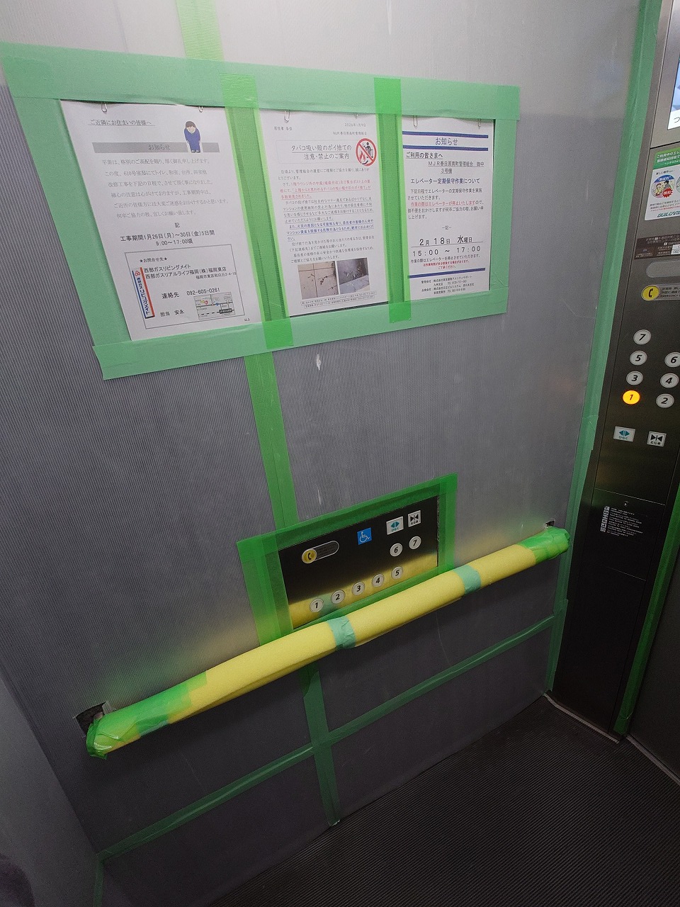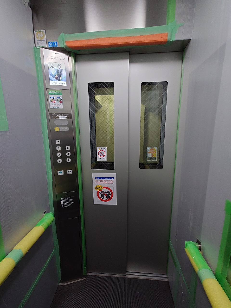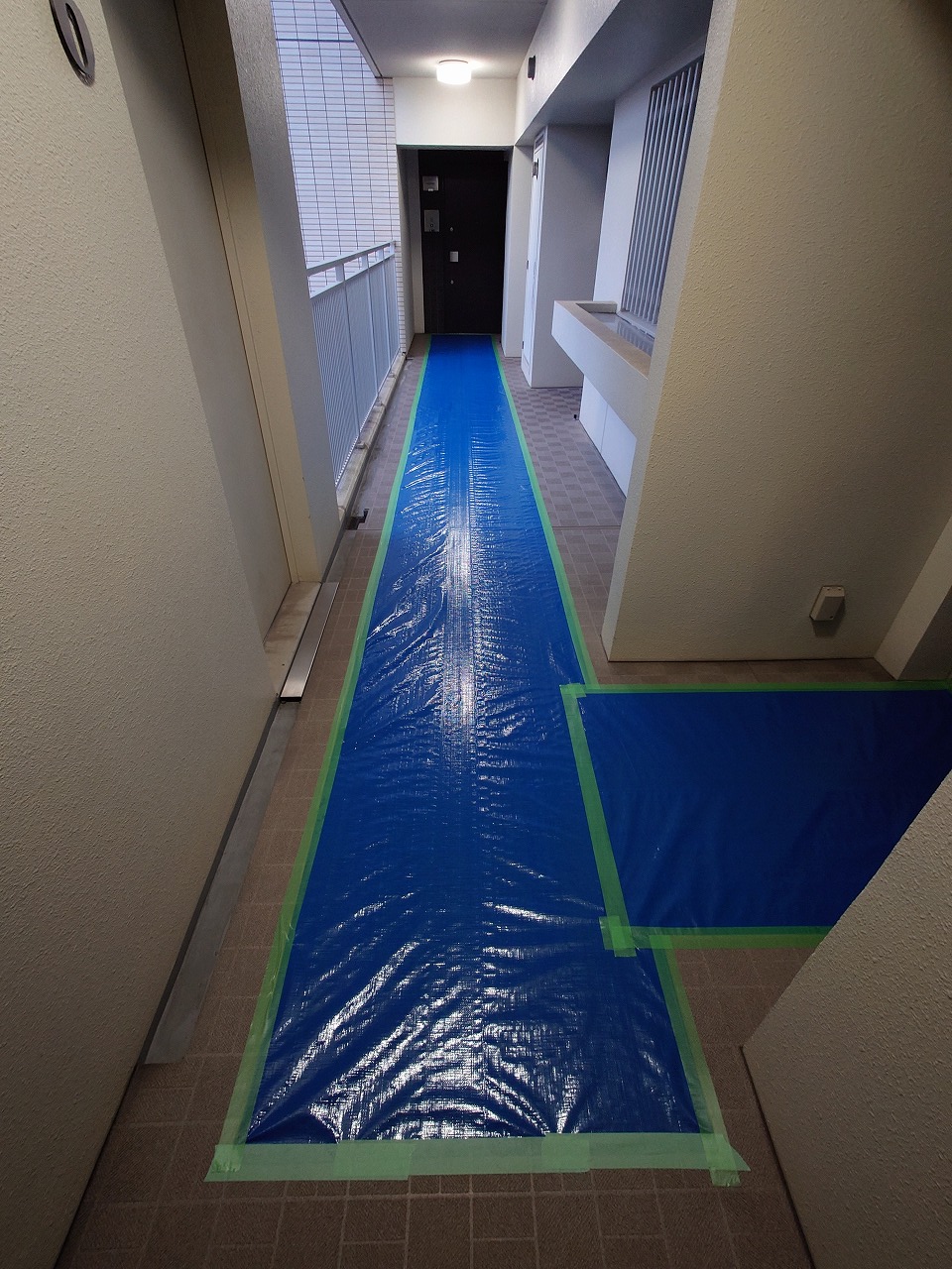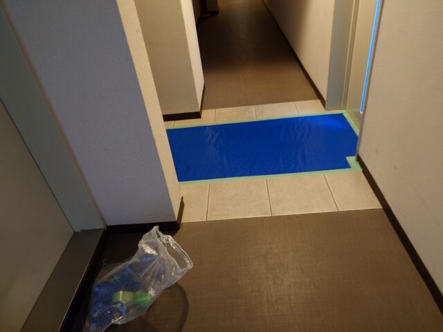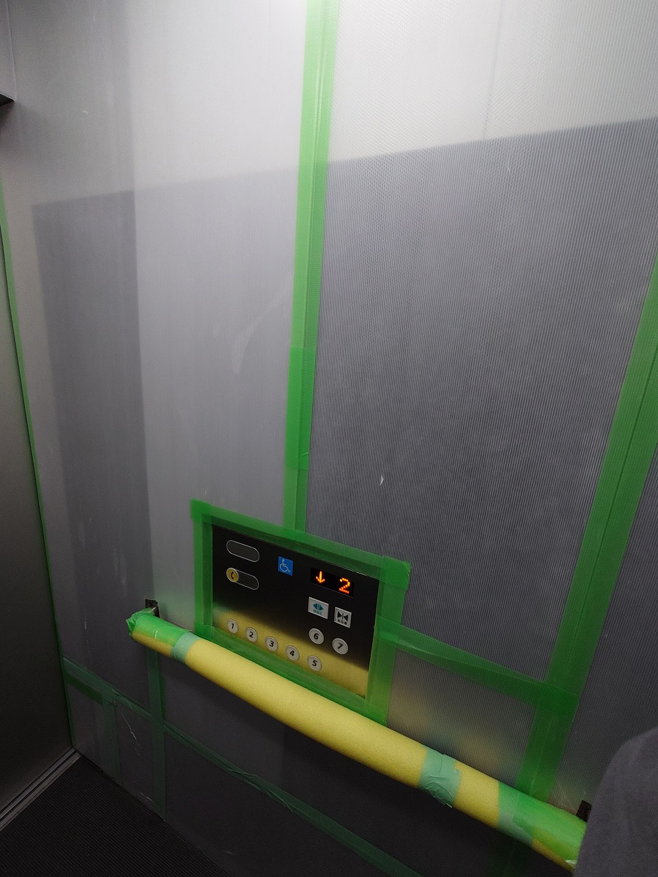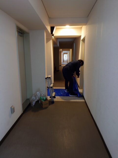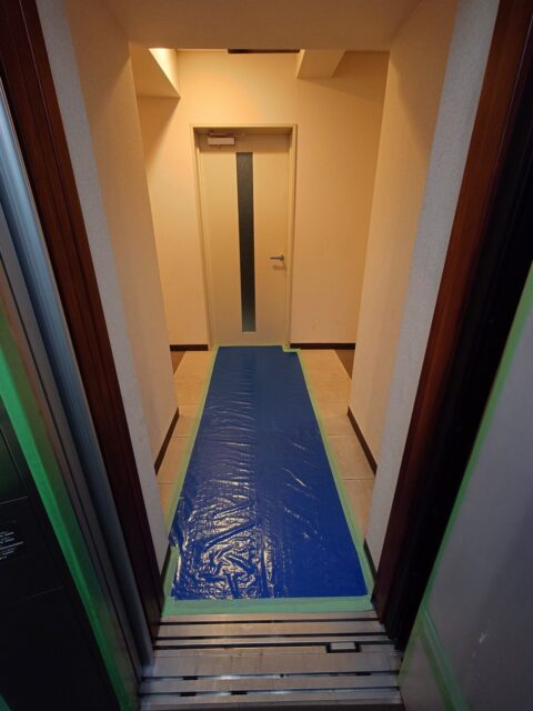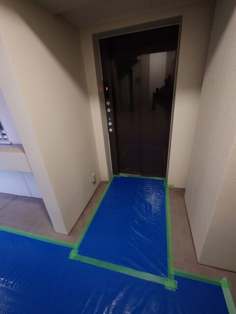 中に入ったら、エレベーター前の養生は終わり・・・
