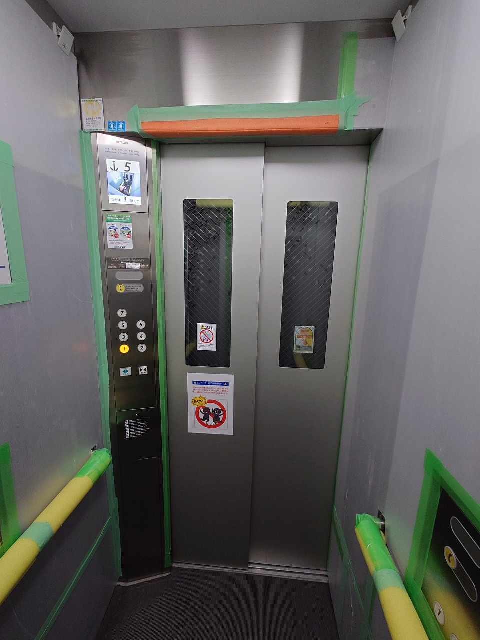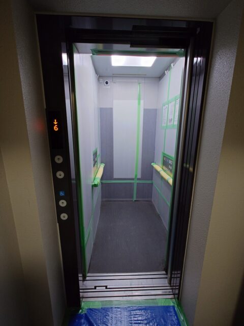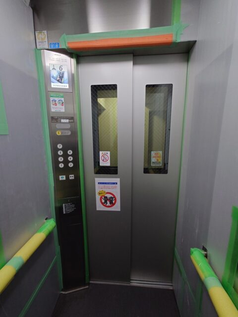 エレベーターの中で作業中でした
