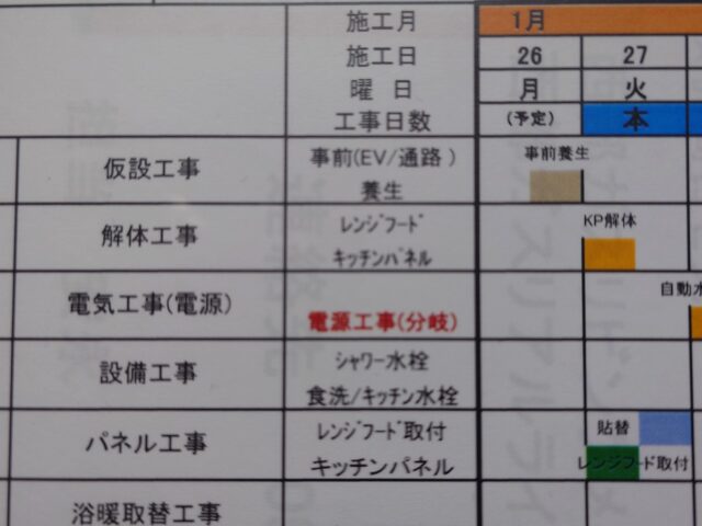 まずはキッチン周り「レンジフード交換」「キッチンパネル貼りつけ」の工事となります