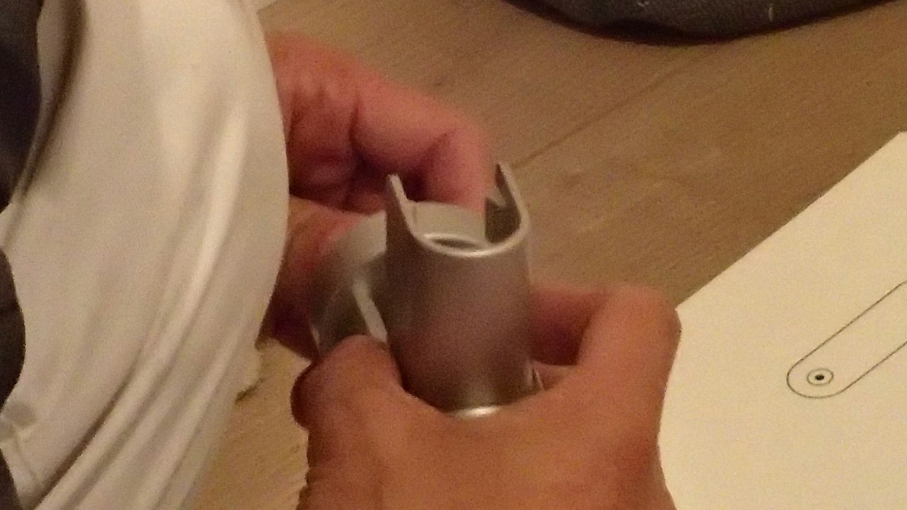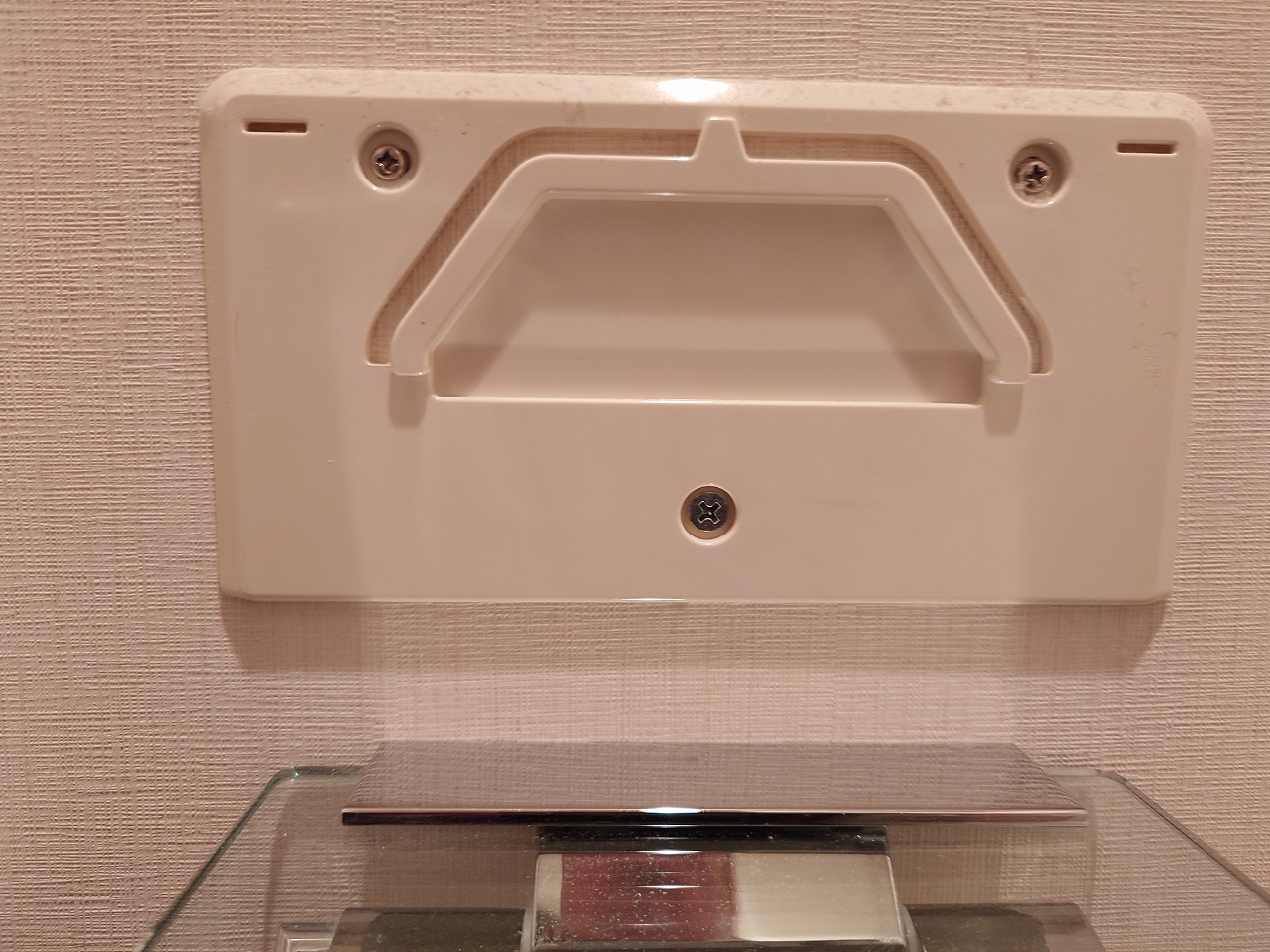 臨時的にネジとその頭のキャップで隠してもらいましたが、そのうち同じような色のシールを探して貼る予定です