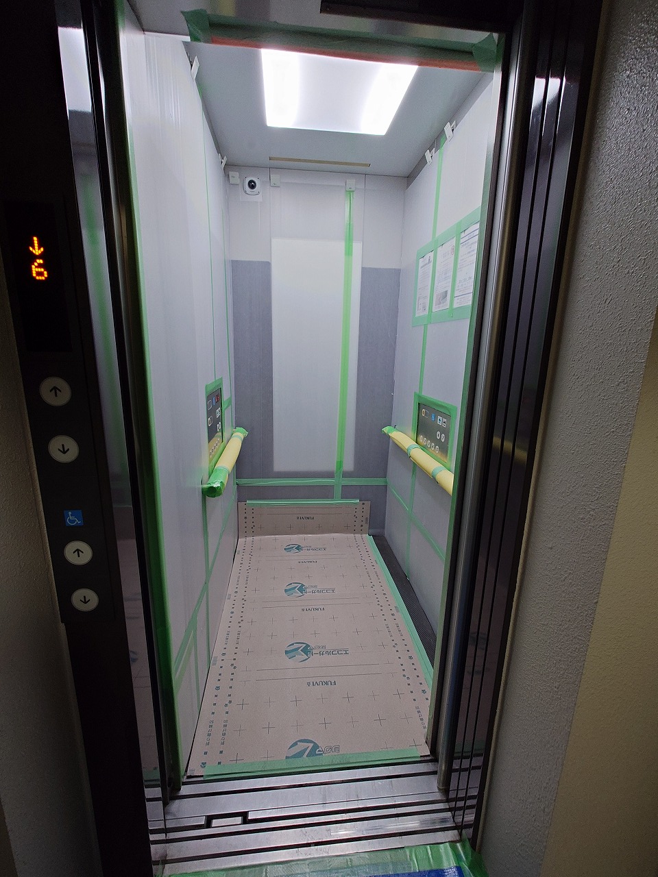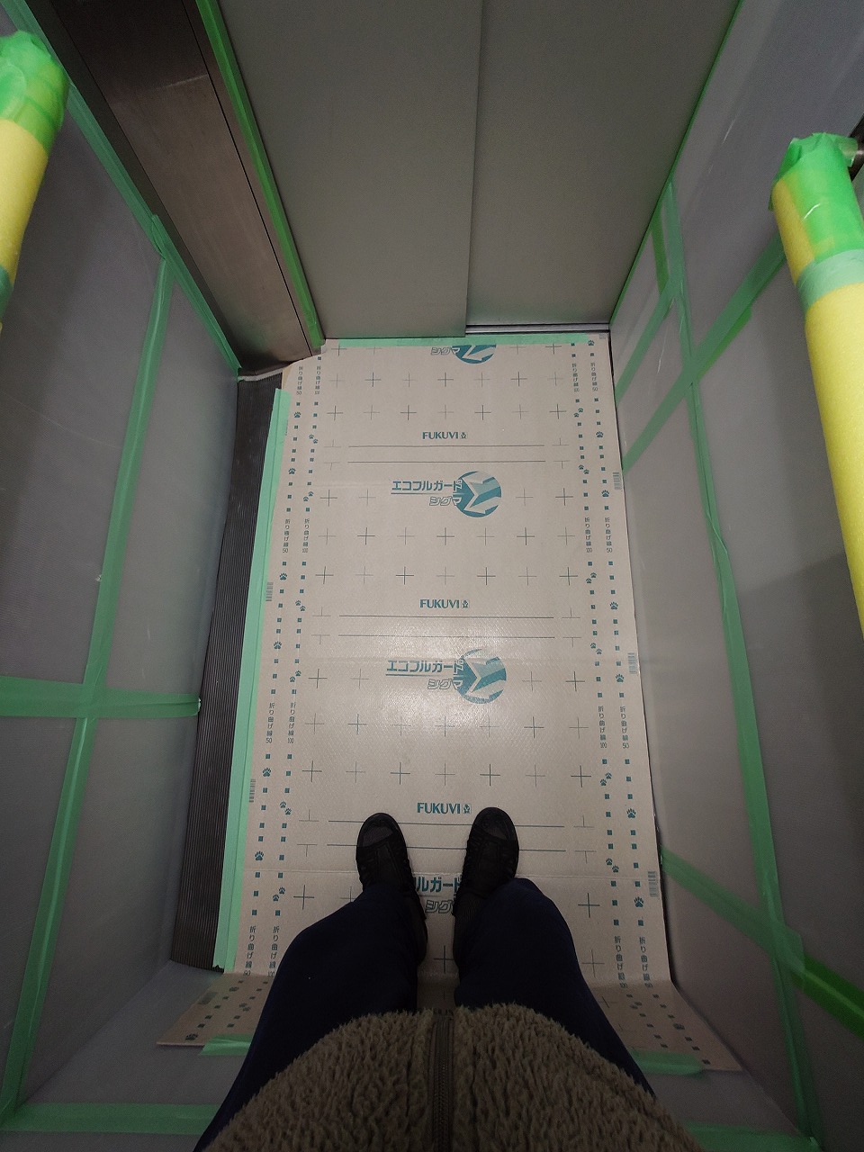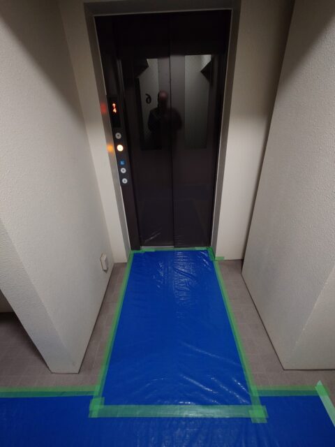 エレベーター内の養生も終わり