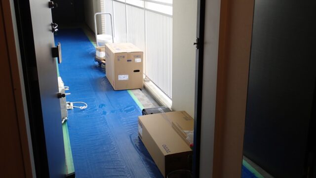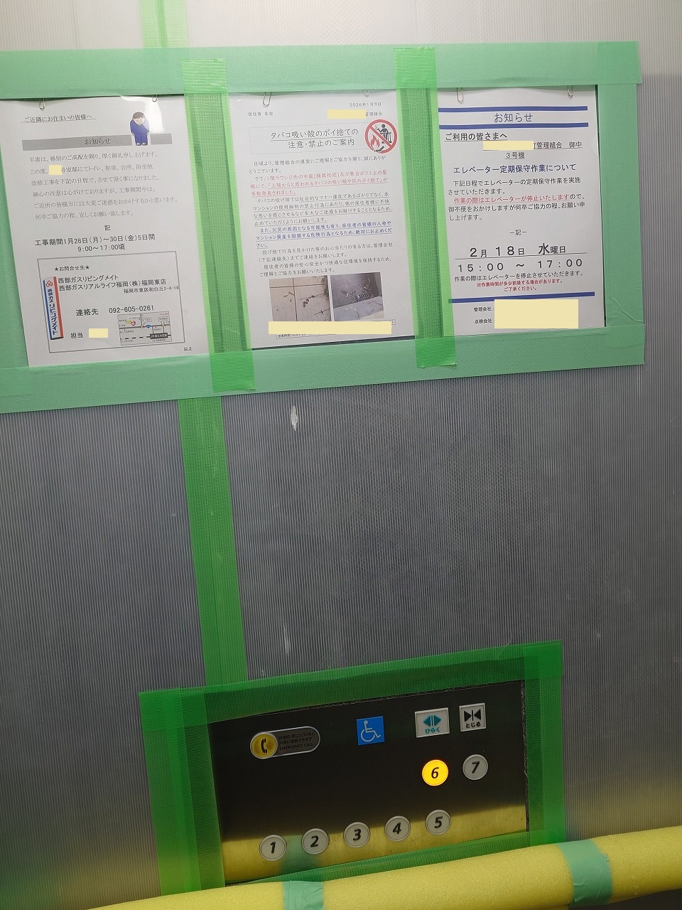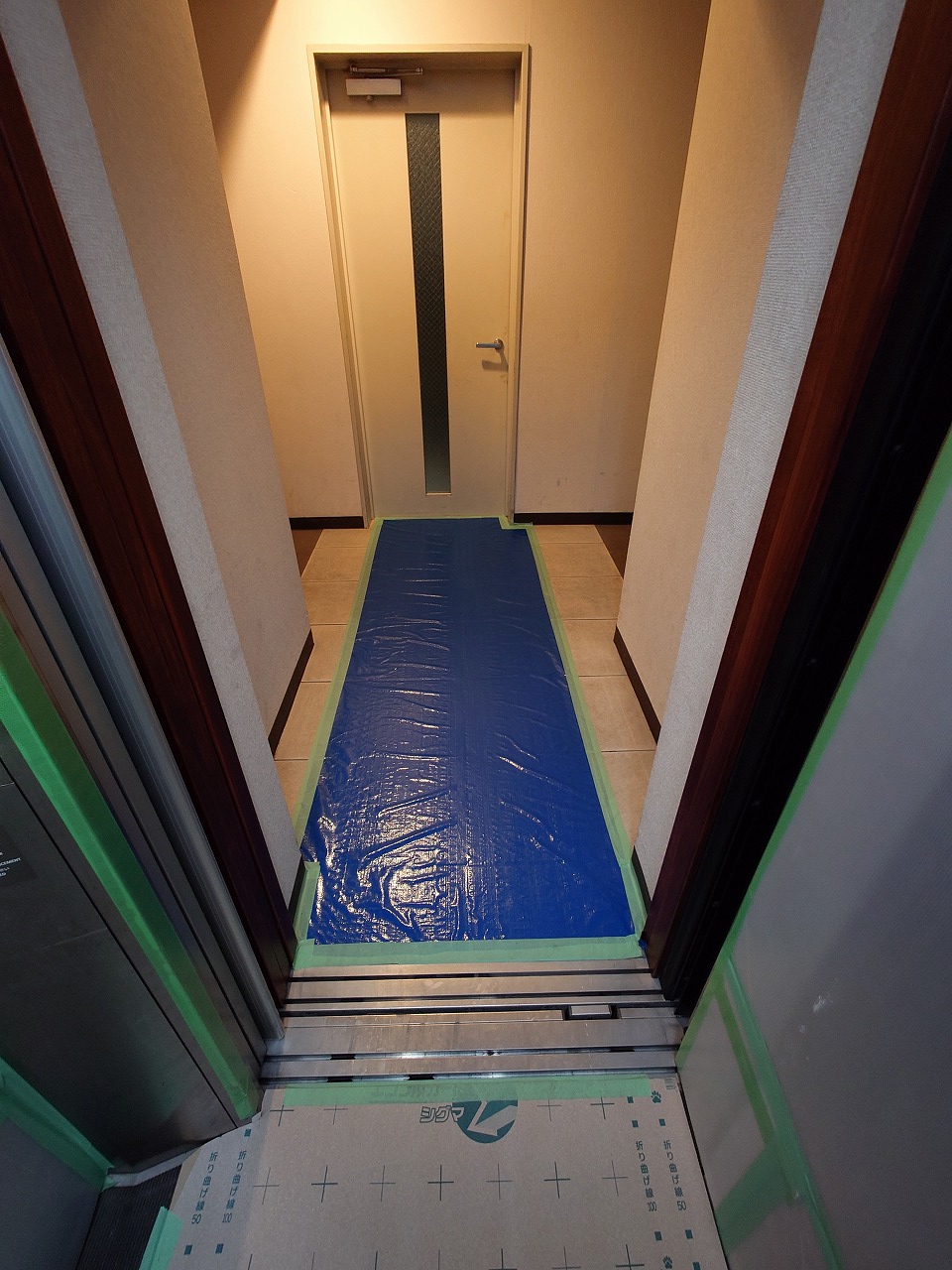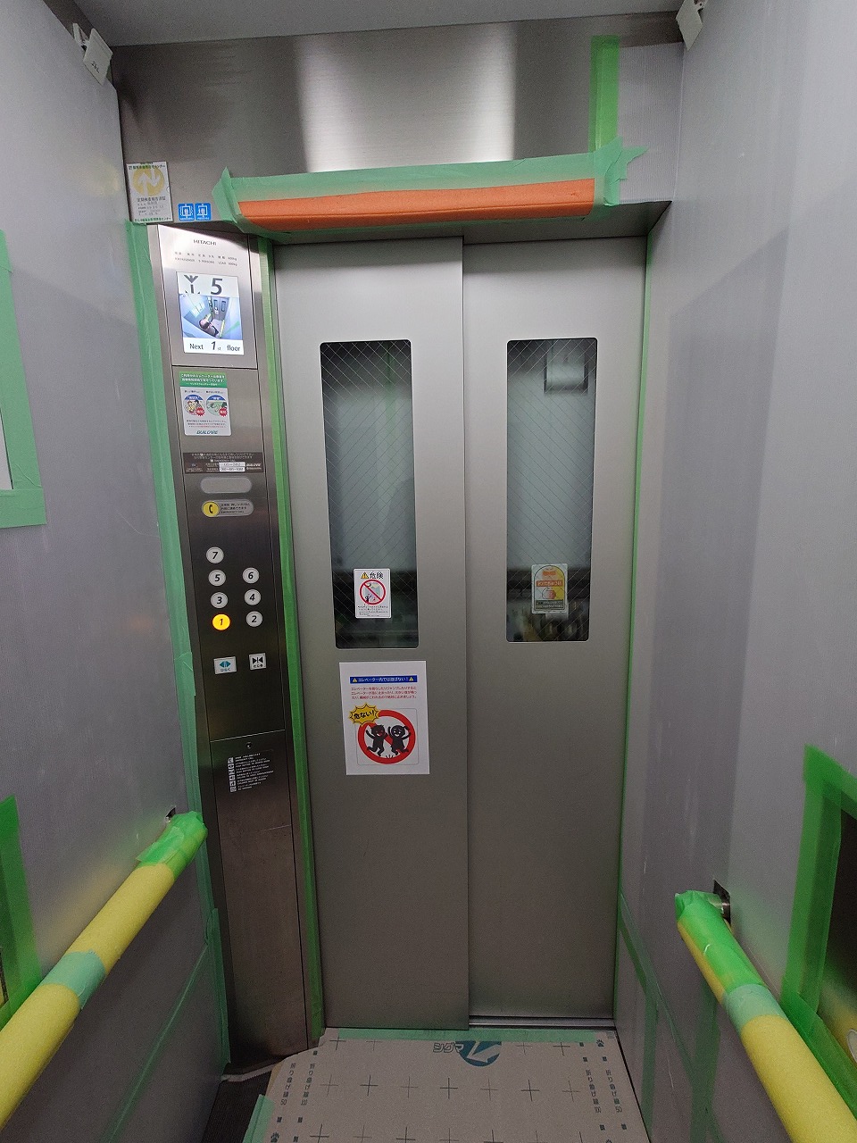 エレベーター内の養生も終わり