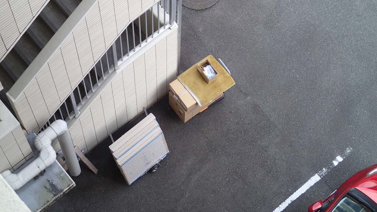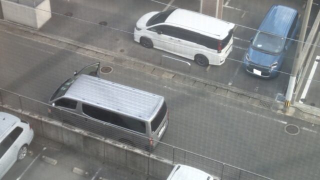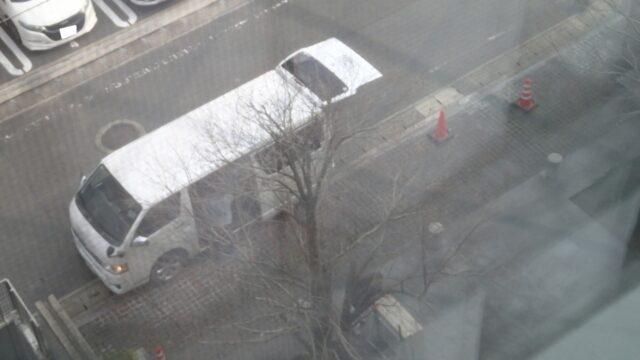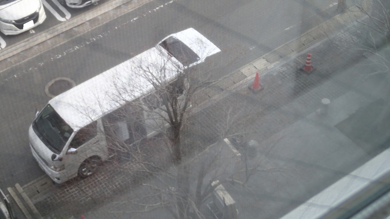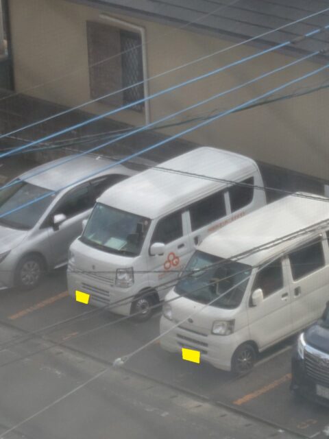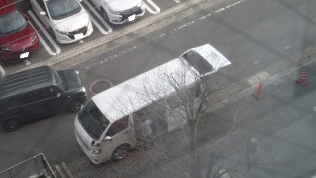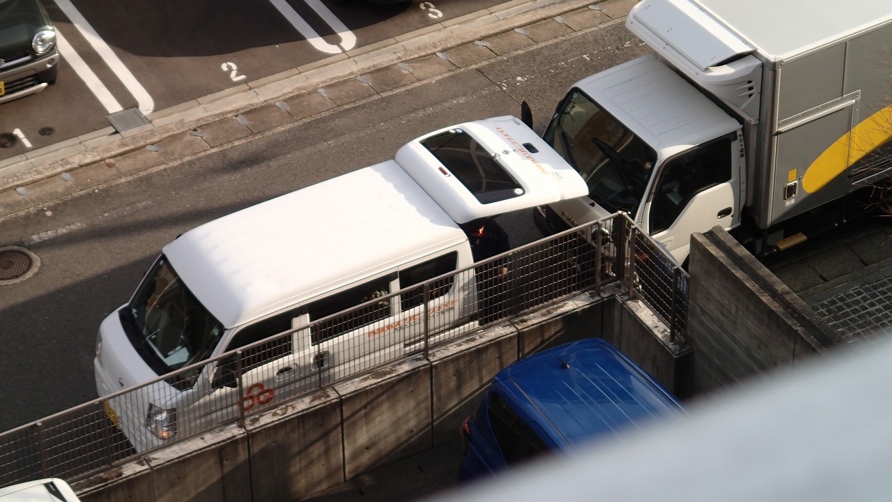 もう1台の同じマークな車両は駐車場に入れず急ぎ荷物下ろし中