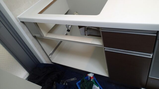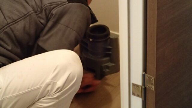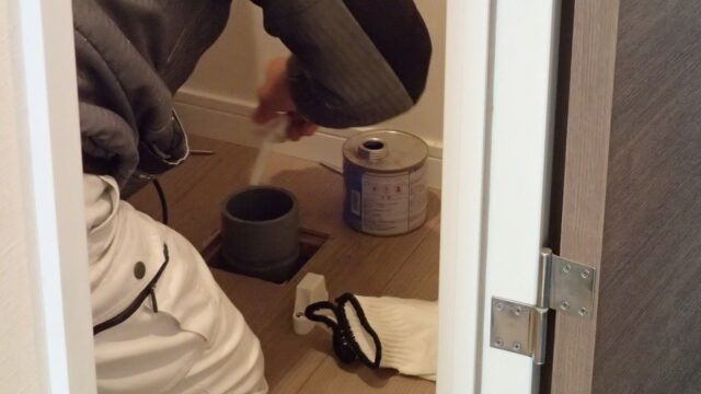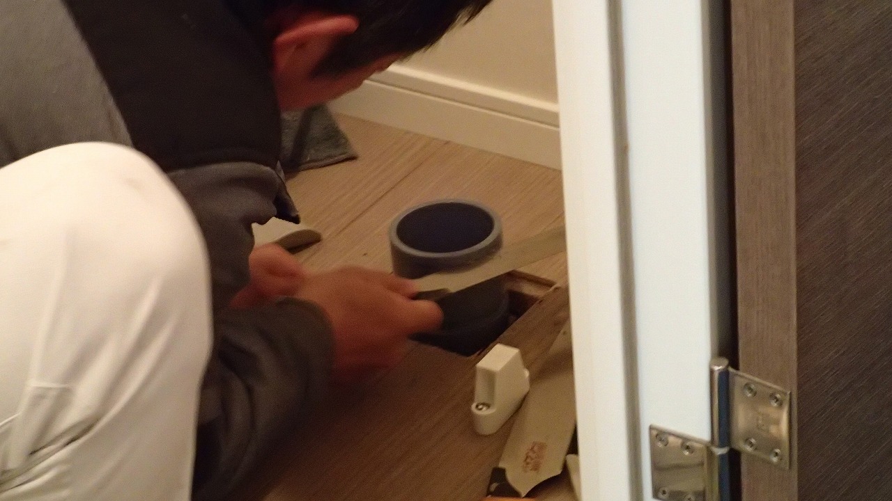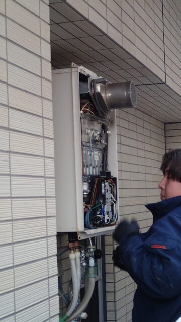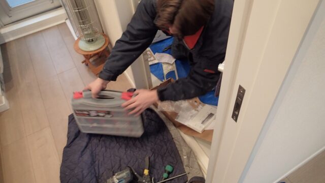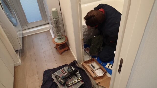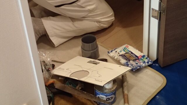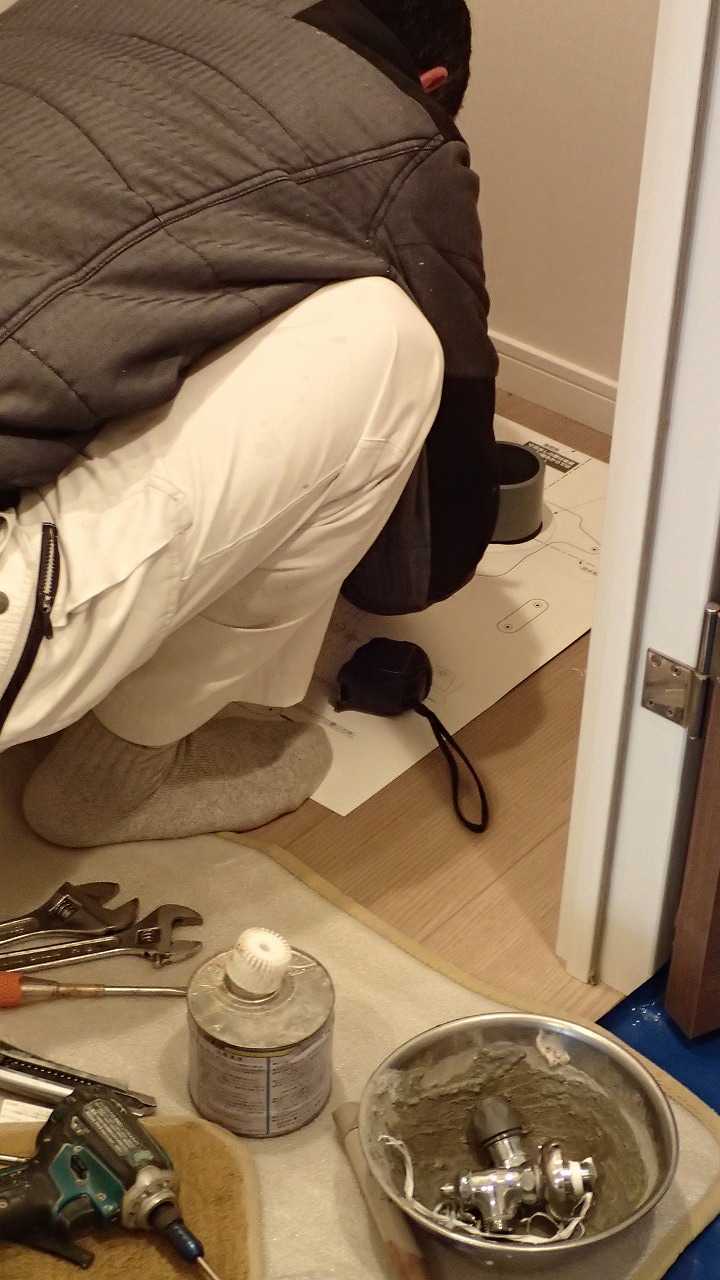 10:27 給湯器の作業がほぼ終わり、同じ職人さんがガスコンロの交換に着手