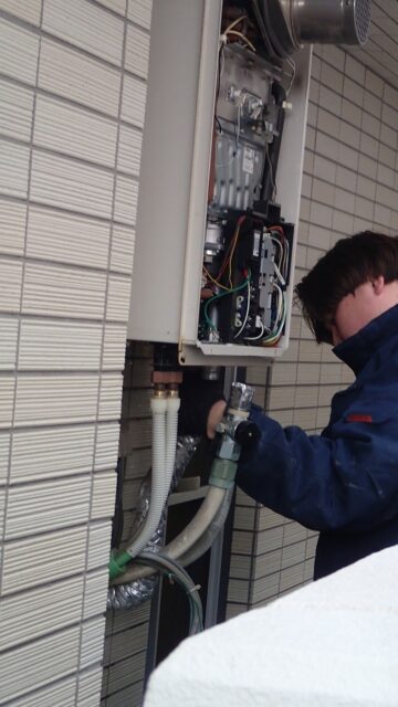 11:17 ガスコンロの取り換えが終わったところでお風呂のお湯張りテスト開始