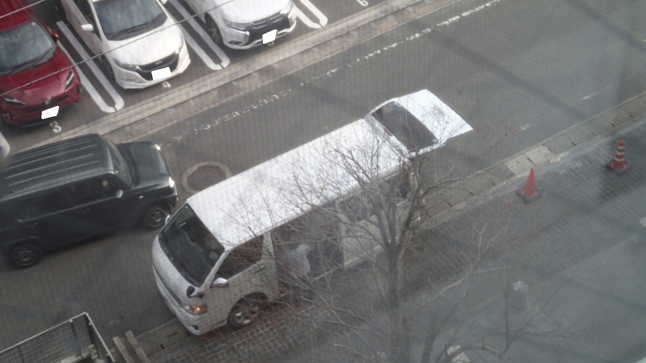 8:48 マンション前のコインパーキングにガス会社マークな軽バン到着