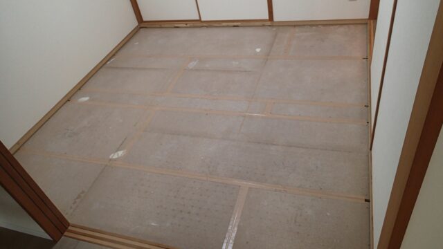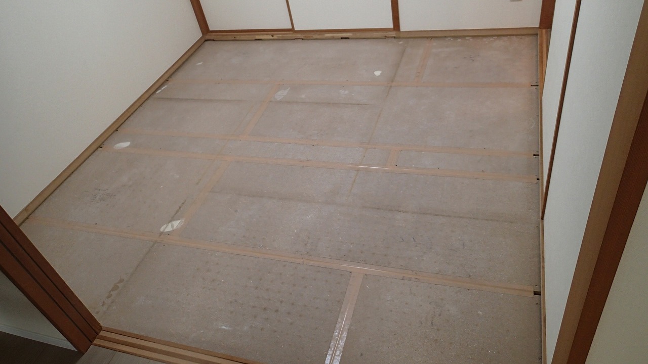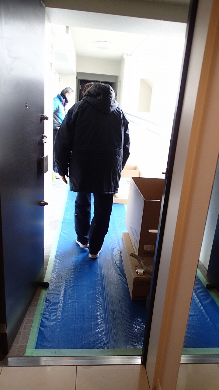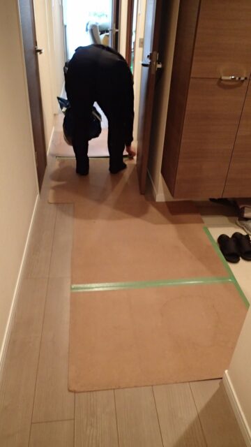床の養生の撤去が始まりました