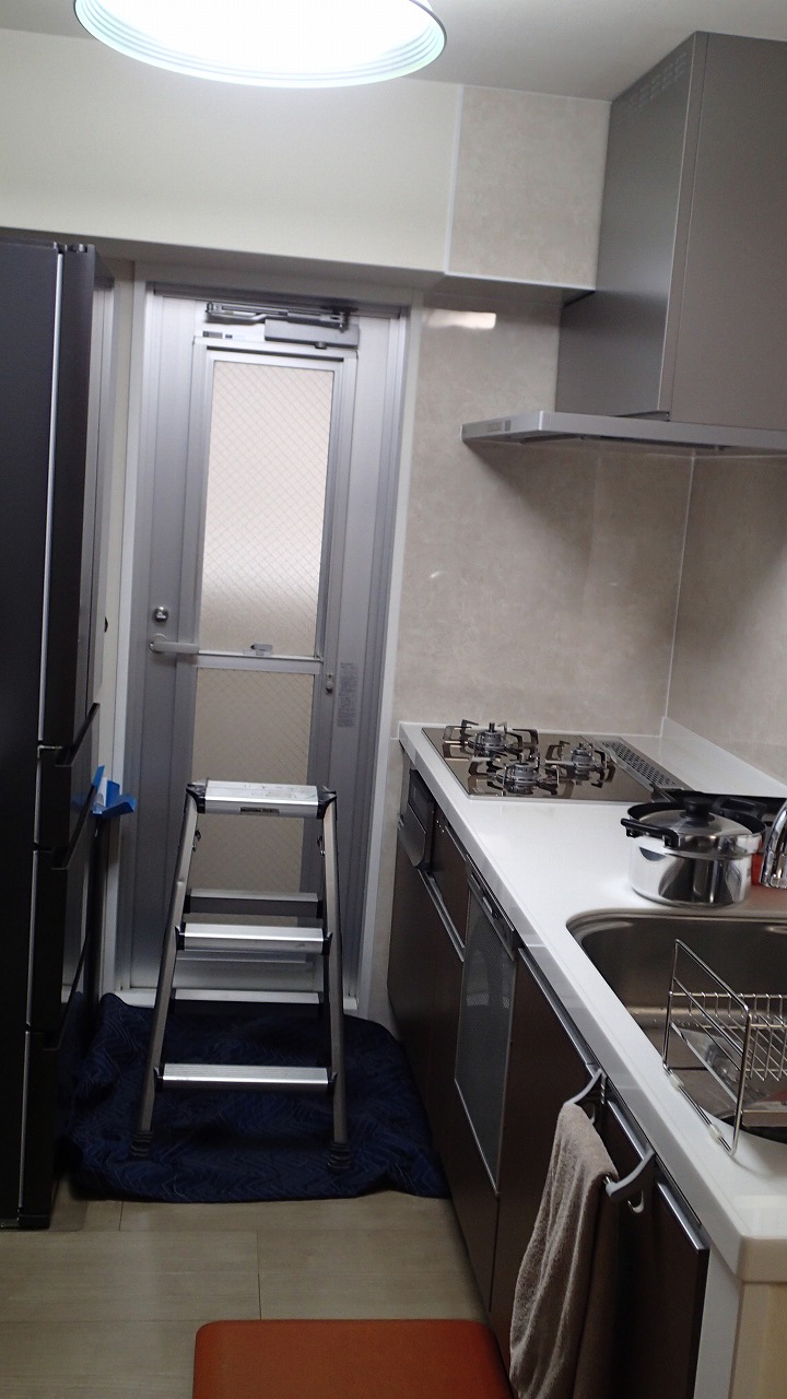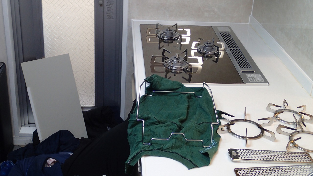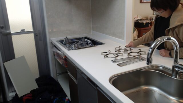 10:37 キッチンでは新しいガスコンロの設置中