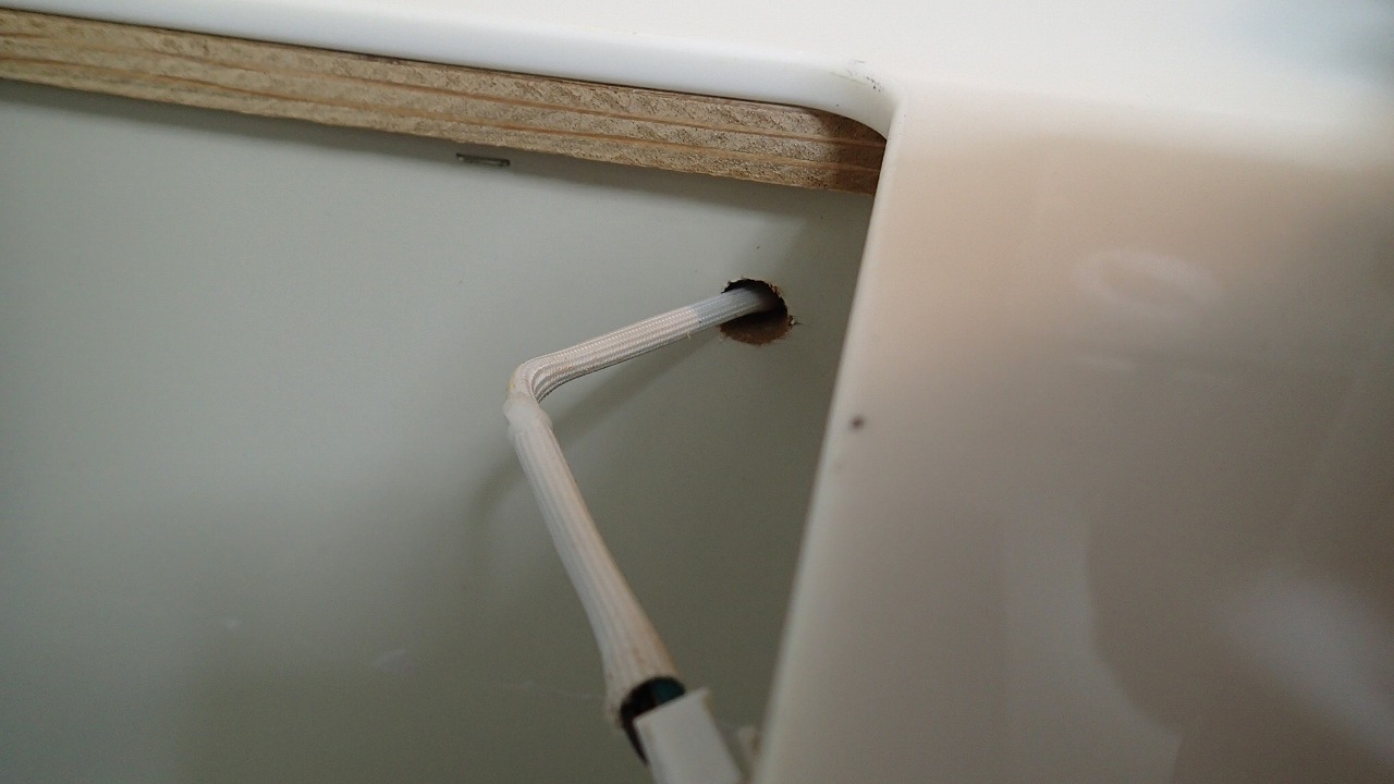 100ボルト電源用のコードを穴あけして取り回したり・・・
