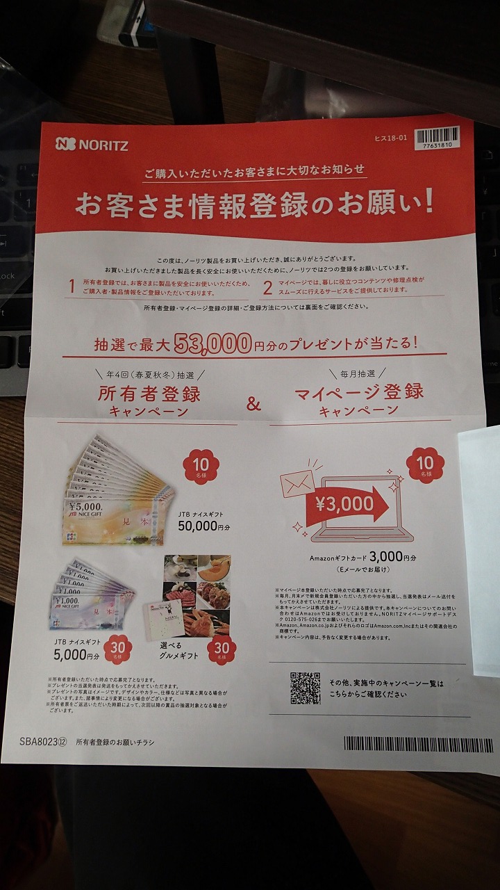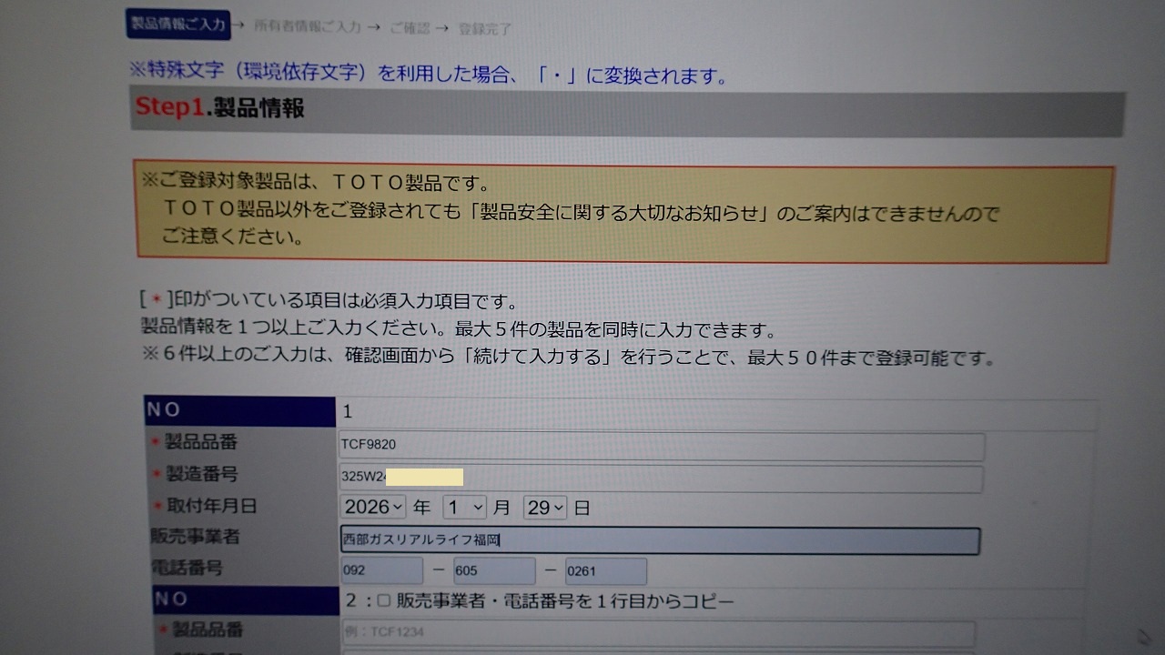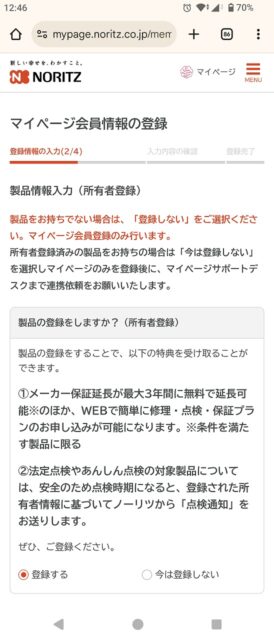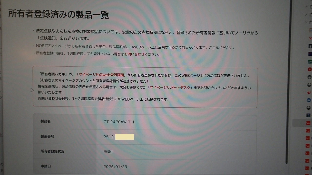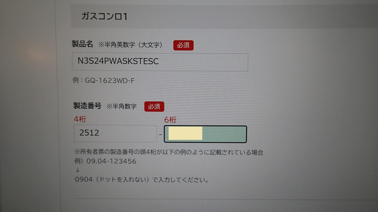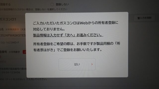 あらら、この機種のガスコンロはWeb登録できないみたいです・・・
