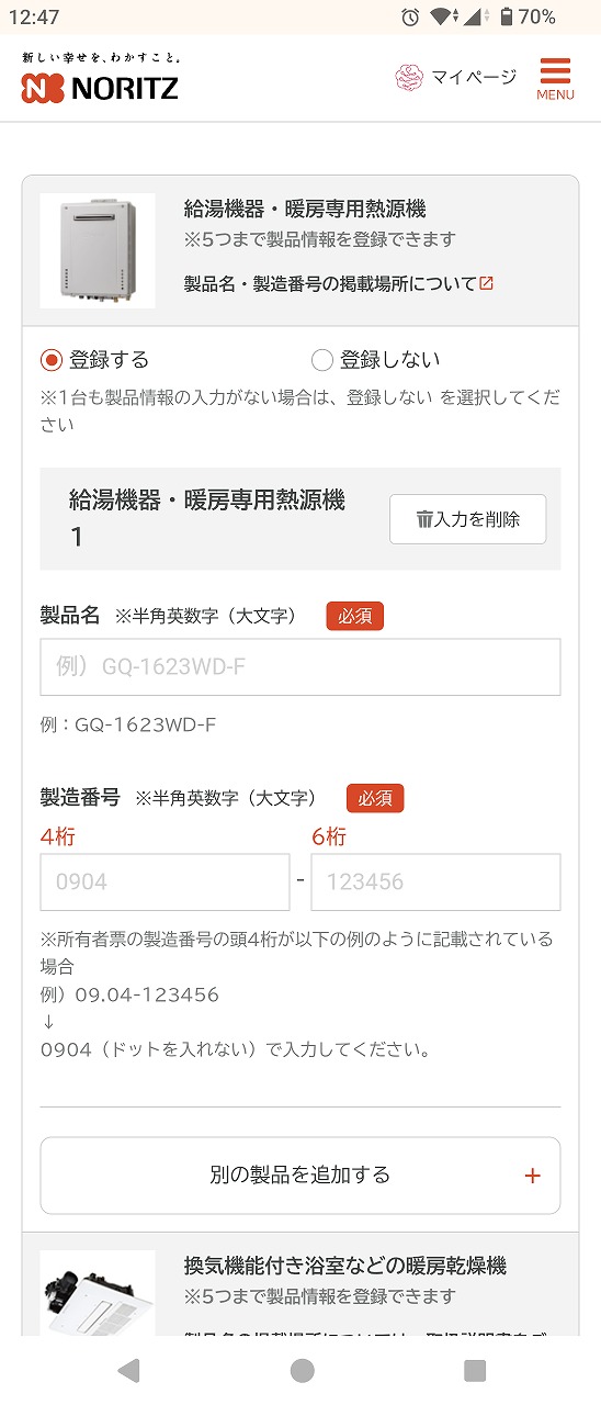 追加でメーカーサポートページから商品を登録