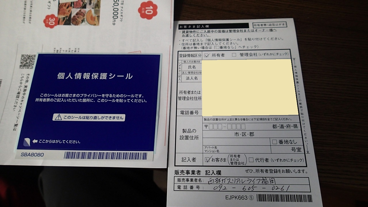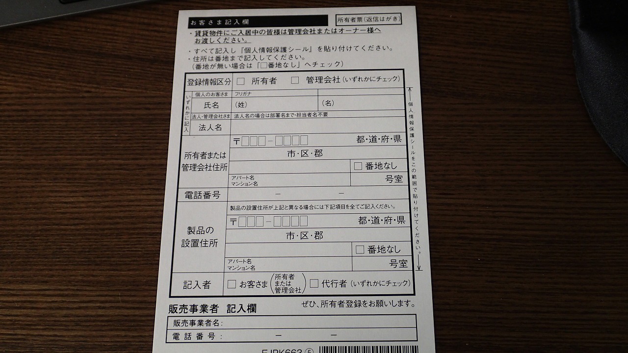 なので、付属のハガキに書き込みます