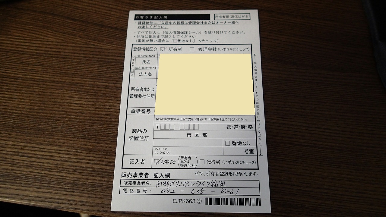 そして、早め早めのお客さま情報(所有者)登録