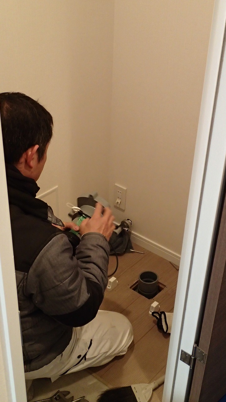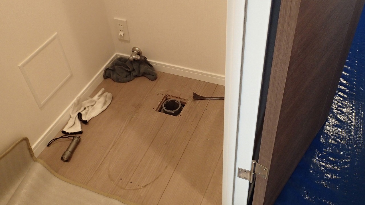 13:37 トイレの便器の取り外しが始まりました