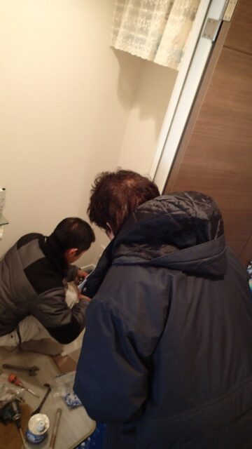 9:13 まずは給湯器の交換から作業開始