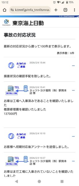2段階ランクダウンによる3年の保険料の値上げ分(約9万円)や免責金額な3万円の合計12万円を支払っても、保険を使ったほうが手出しが少ないので、保険適用で修理することにしました
