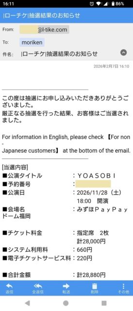 そんな日に、祝!YOASOBIなドームコンサートチケット当選!!