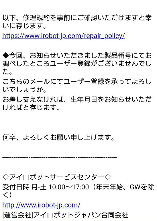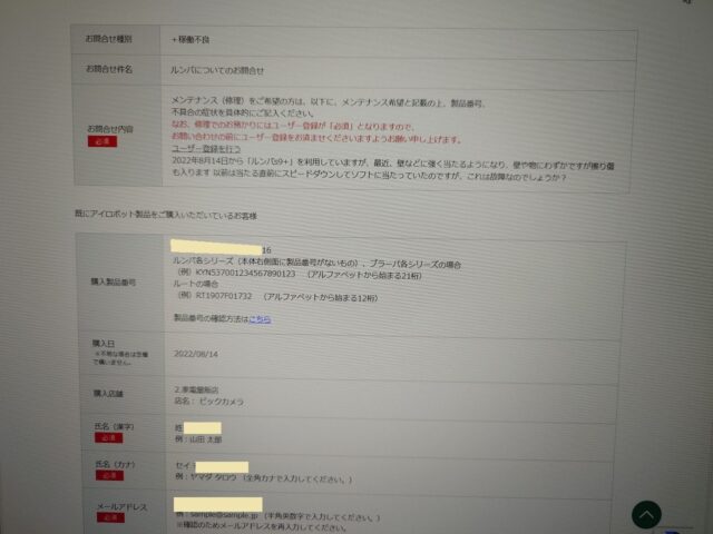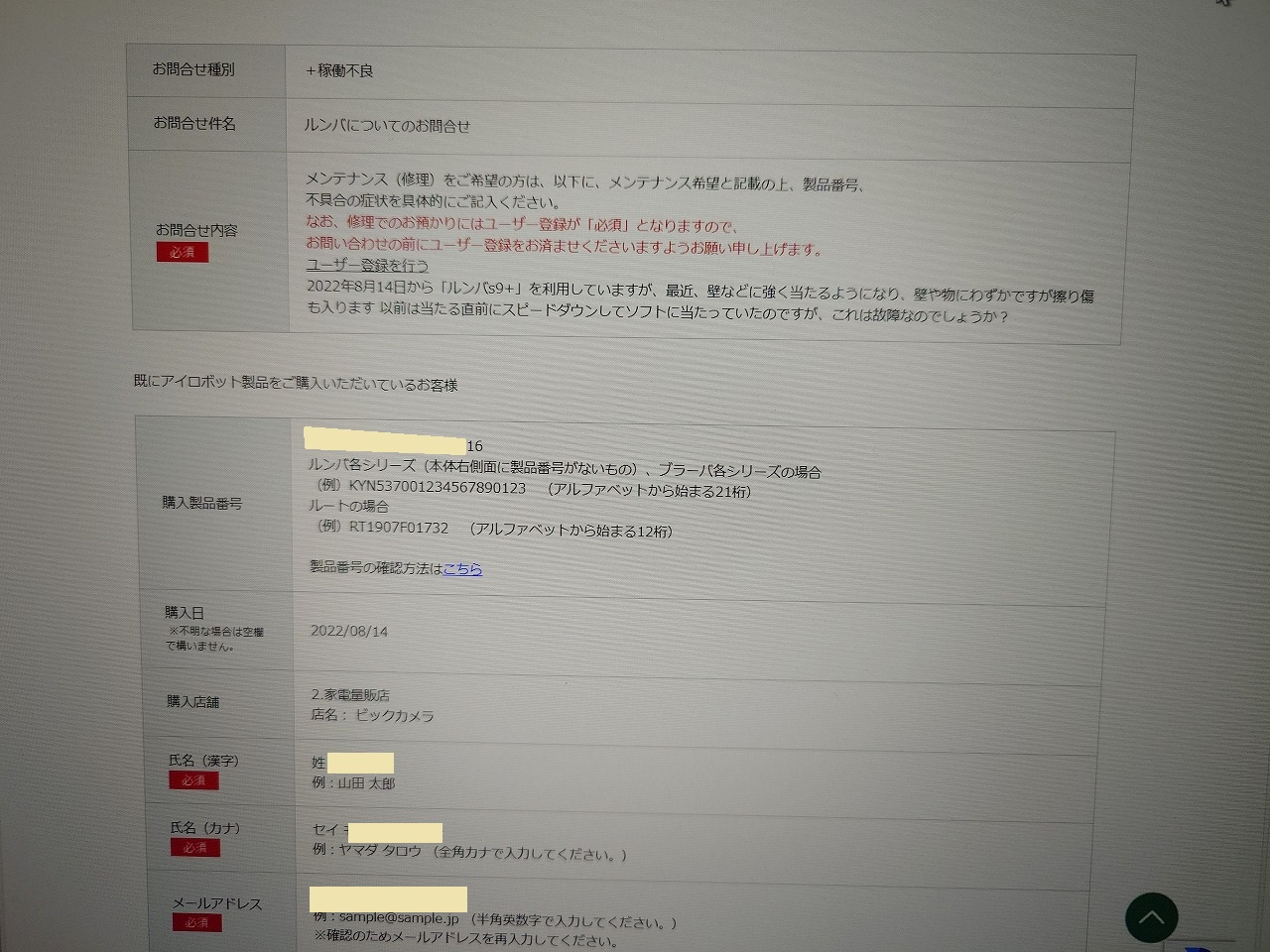 ルンバも延長保証に加入しているので、マジ故障の時はまた購入した家電量販店へ・・・