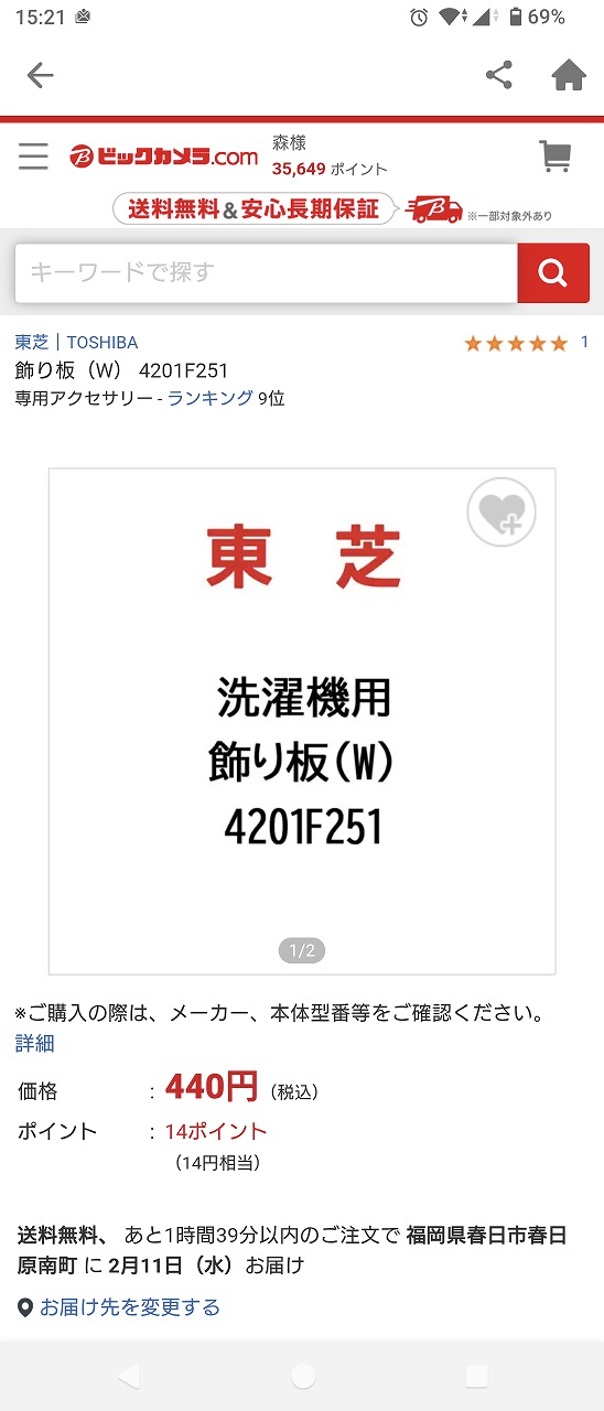 なので、いつもの家電量販店に「洗濯機用飾り板」なる商品を注文