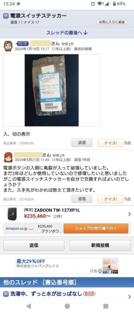実はこの不具合は以前からクチコミサイトで情報を入手していました