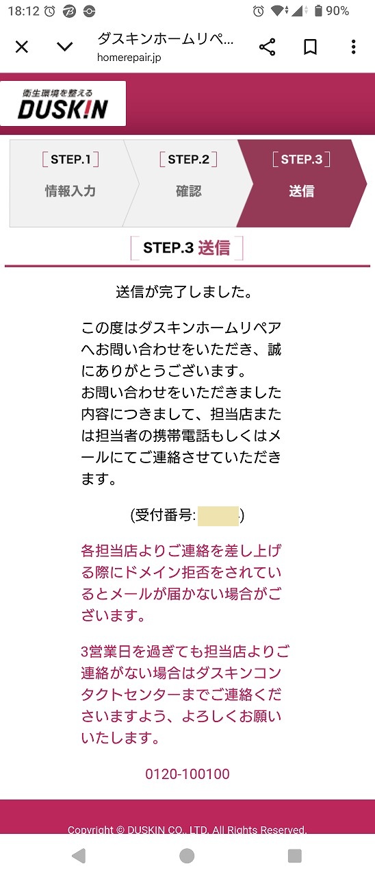 すぐに受付済メールが届きました