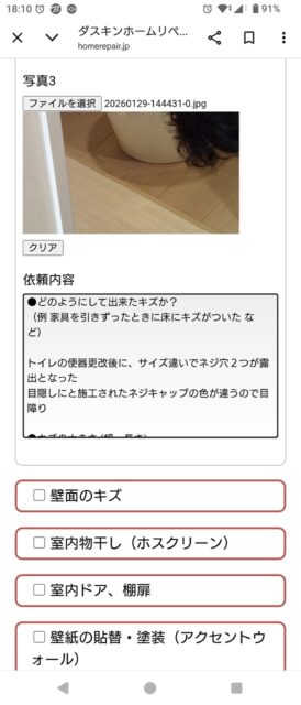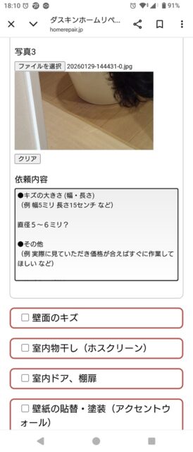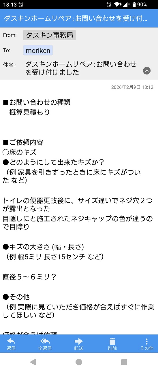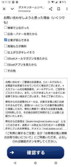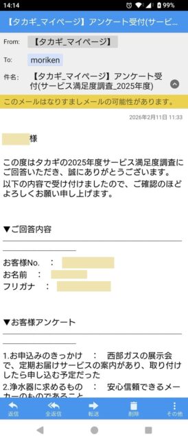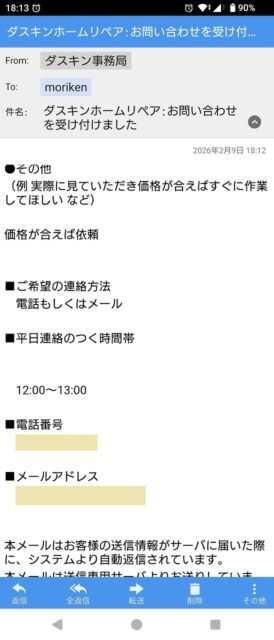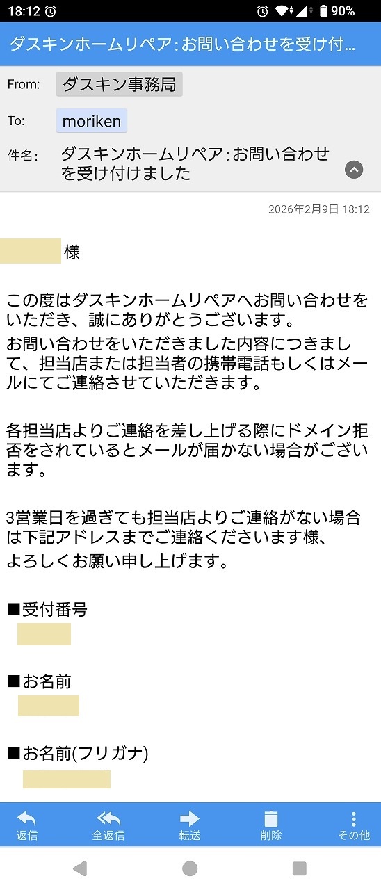 リフォームで設置した機器のメーカーから突然届いたショートメール