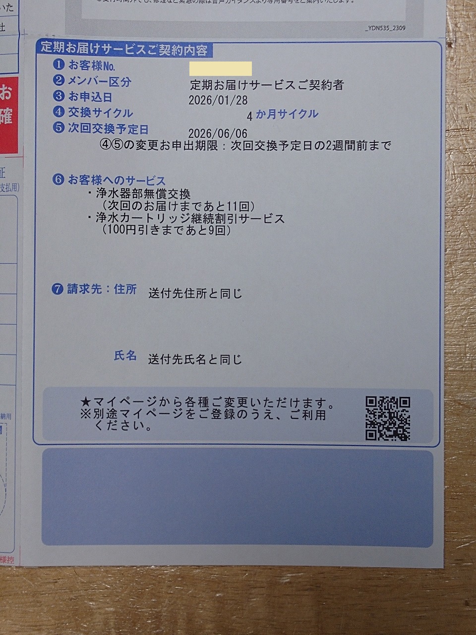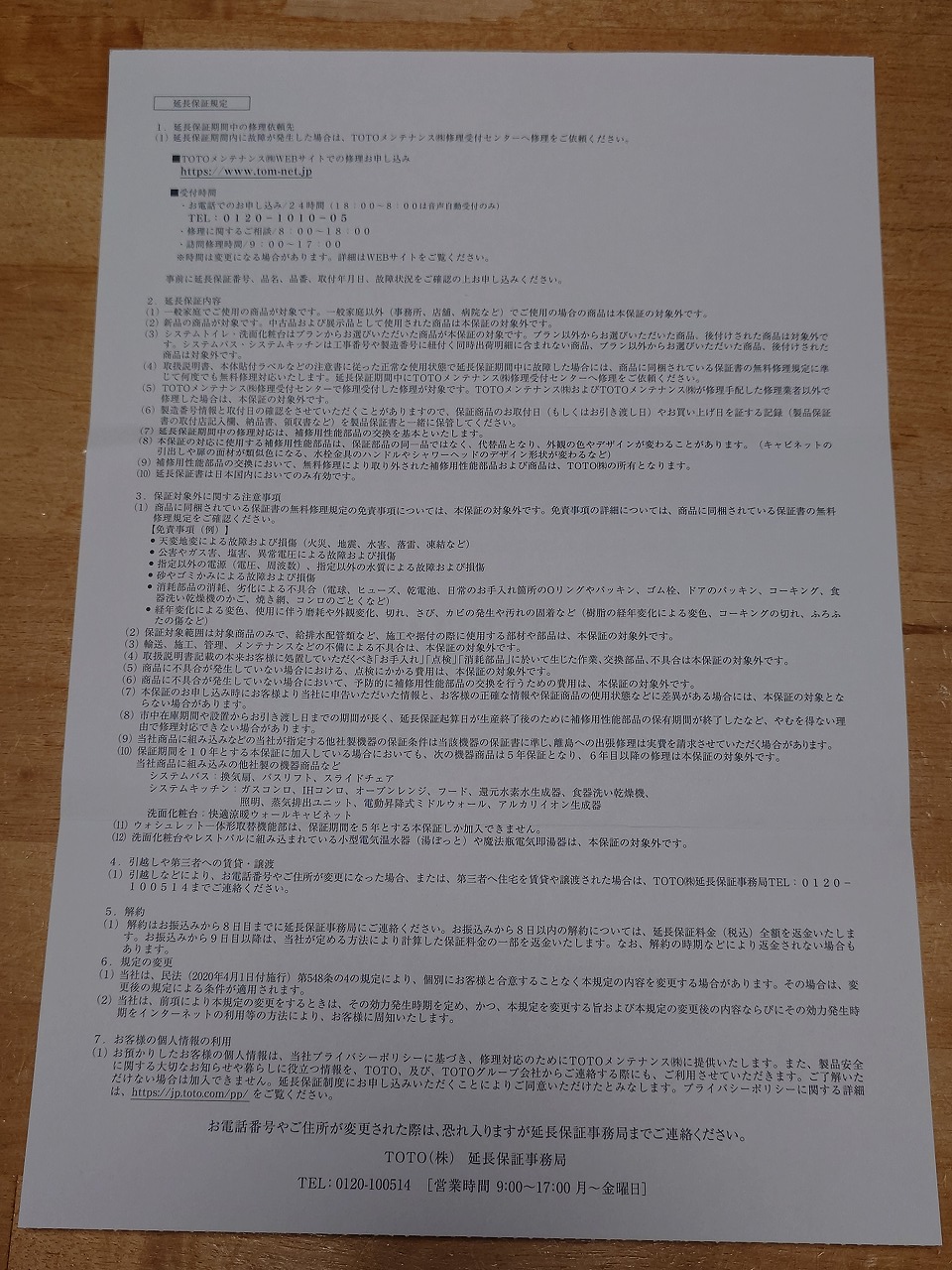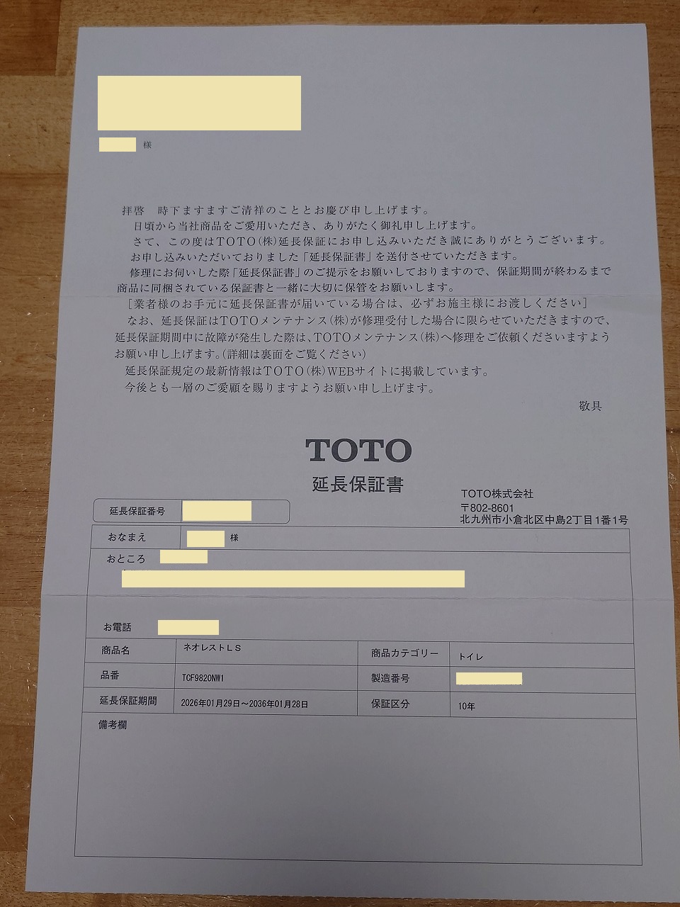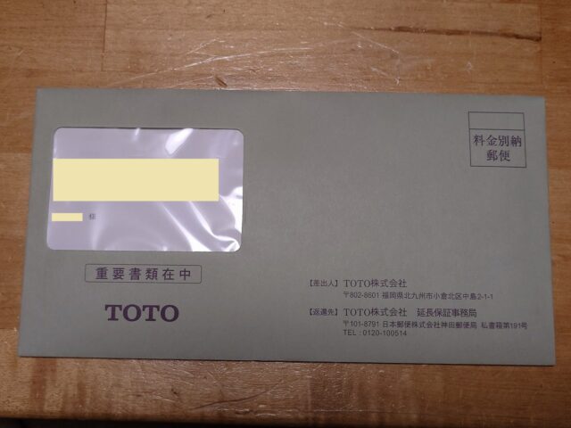 中身は先日申し込んだトイレ便器の「延長保証書」