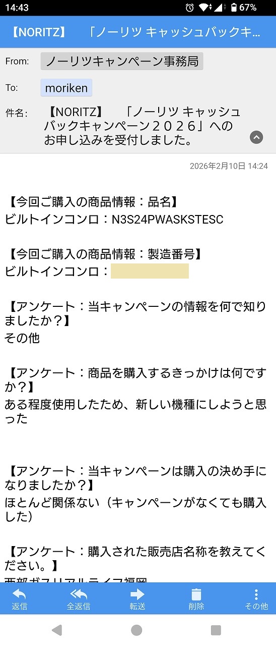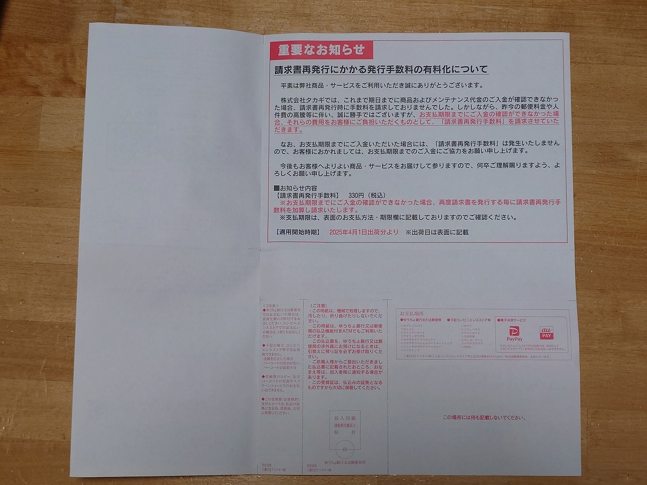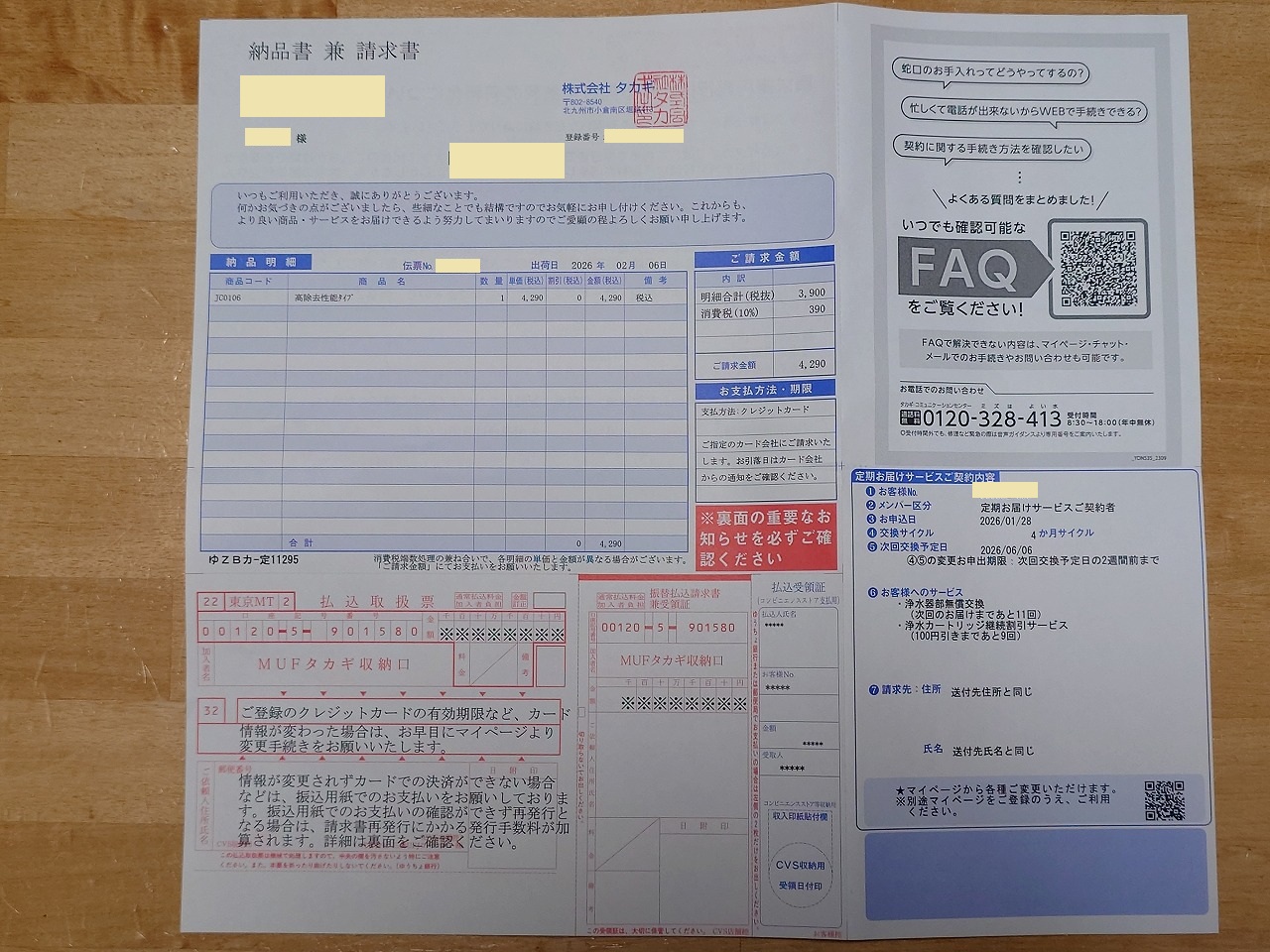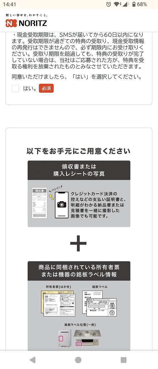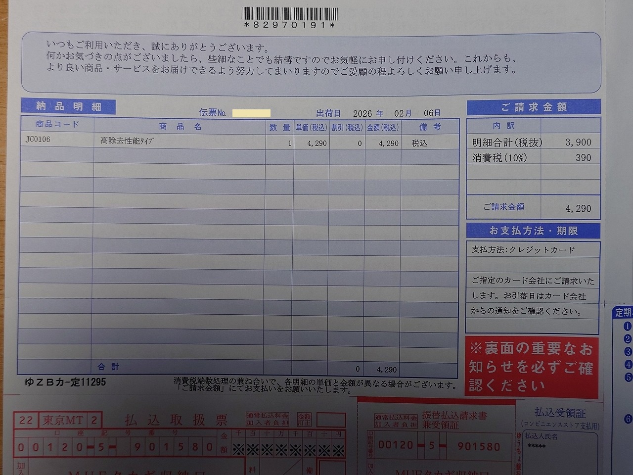 支払いは対象機器を含めた総額の振り込みをスマホの銀行アプリで行い、その明細はあるものの、同じページに口座残高もあるので画面コピーは付けられず・・・