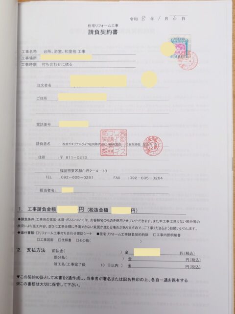 なので、応募時にこれらの「請負契約書」と「内訳明細書」を添付しました