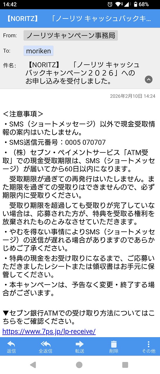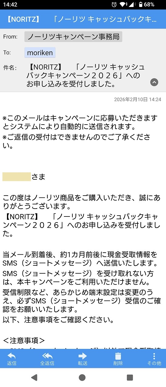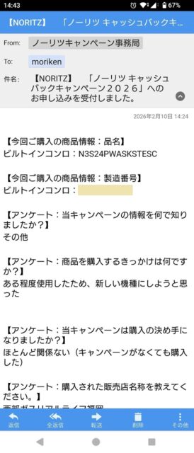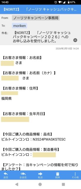 これも受付完了メールを受領
