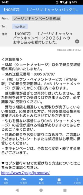 こちらもすぐに受付メールを受領