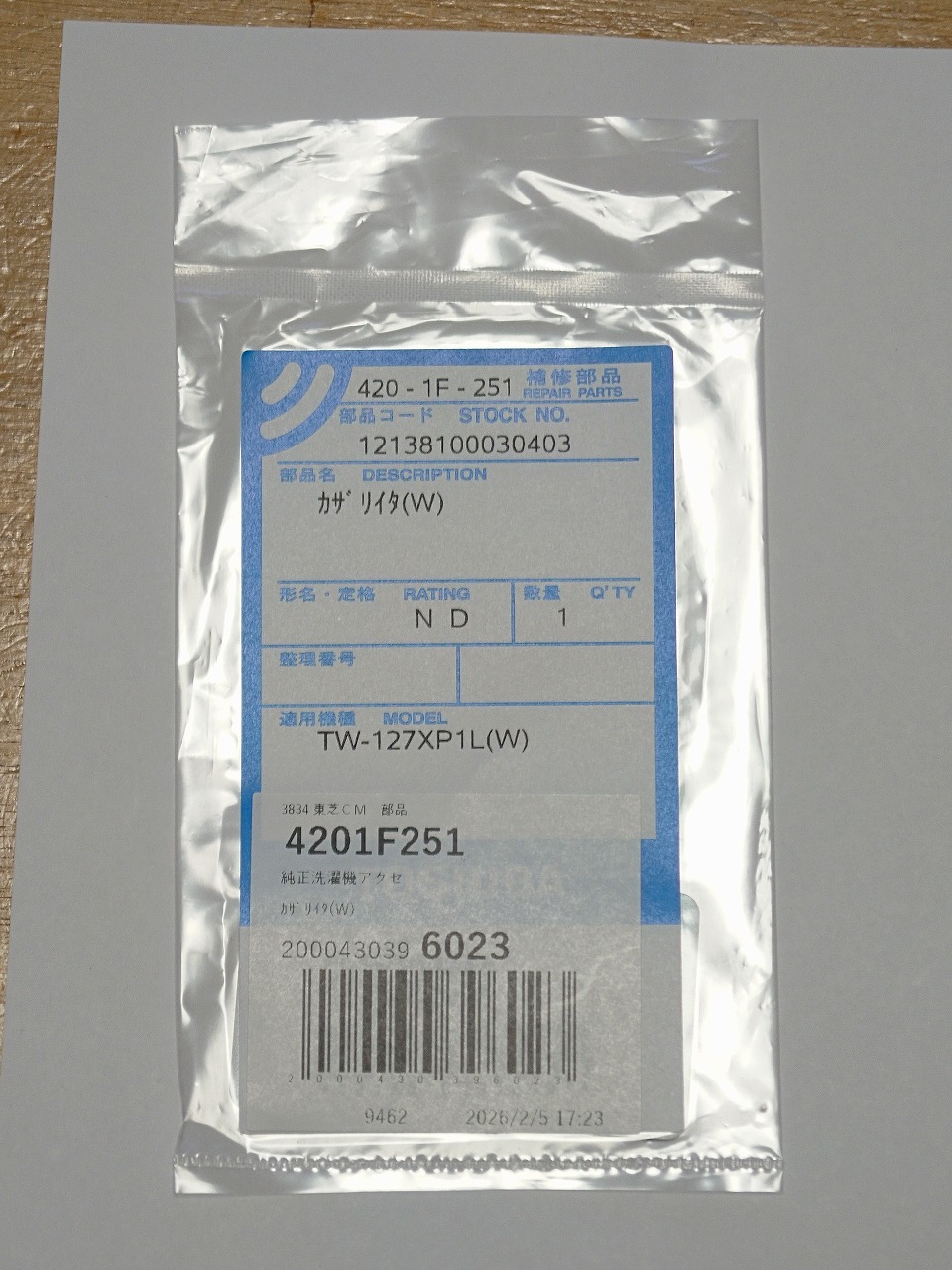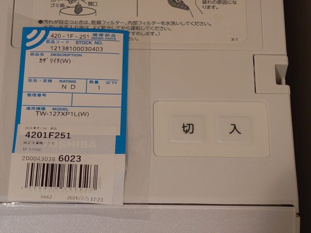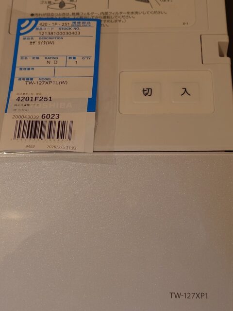 中身は、洗濯機なTW-127XP1L(W)用、品名コード12138100030403の