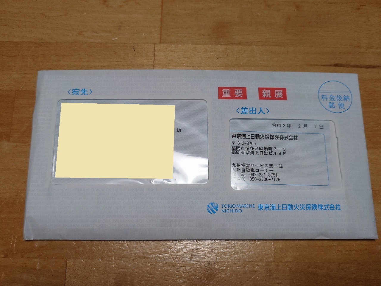 先日届いた封書