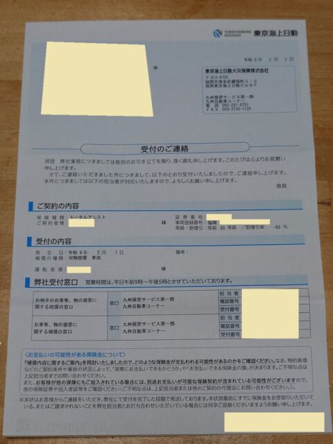 中身は事故受付のご連絡
