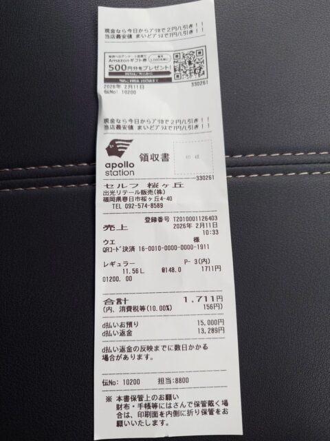 11.56L・1,711円な代車費用お支払い