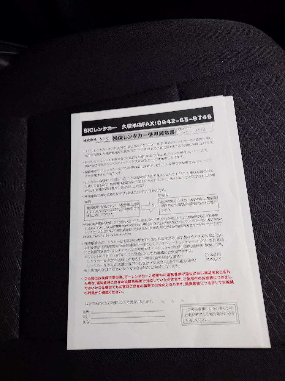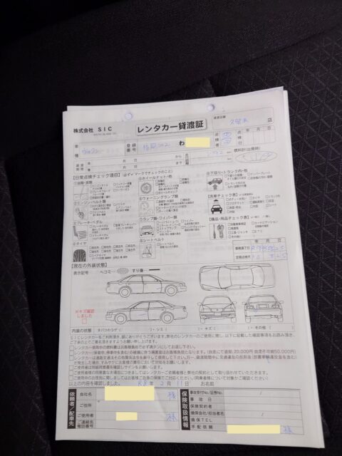 新型アルファードの時はディーラーの担当者が持ち帰ったみたいですが、今回は「レンタカー貸渡証」なるものが車内に